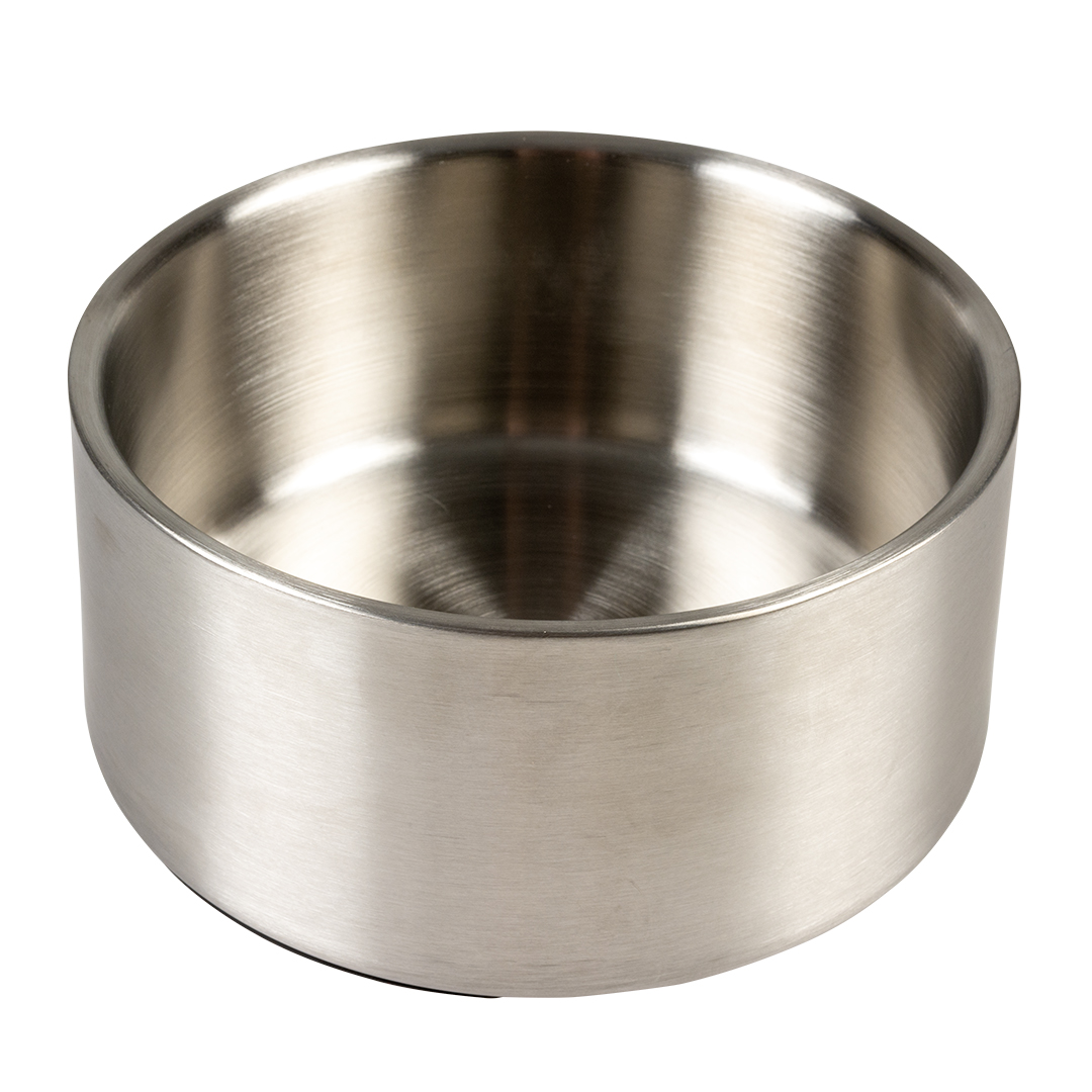 Tyylikkään näköinen, painava, ruostumattomasta teräksestä valmistettu metallikuppi. Pohjassa liukuesteet, konepesunkestävä.