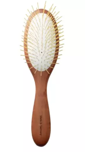 Kevyen metallipiikkiharjan varsi on kovaa päärynäpuuta ja 20mm piikit käsitelty antistaattisiksi. STOP-tekniikka estää harjanpäitä juuttumasta turkin sisään.