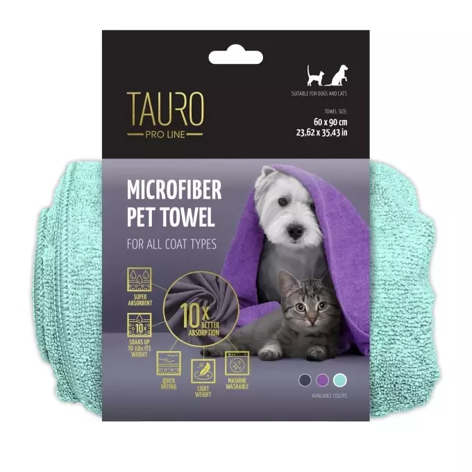 Pyyhkeet ovat valmistettu huippuluokkaisesta ja erittäin laadukkaasta mikrokuidusta, joka imee itseensä n. 10 kertaa enemmän kosteutta kuin tavallinen puuvillapyyhe. Kangas ei ole ainoastaan imukykyistä, se on myös erittäin pehmeää ja kuivaa lemmikin turkin takkuuntumatta tai kiskomatta sitä. Kokonsa ja imukykyisyytensä ansiosta Tauron pyyhkeet ovat ihanteellisia lian ja kosteuden poistoon lemmikin turkista.