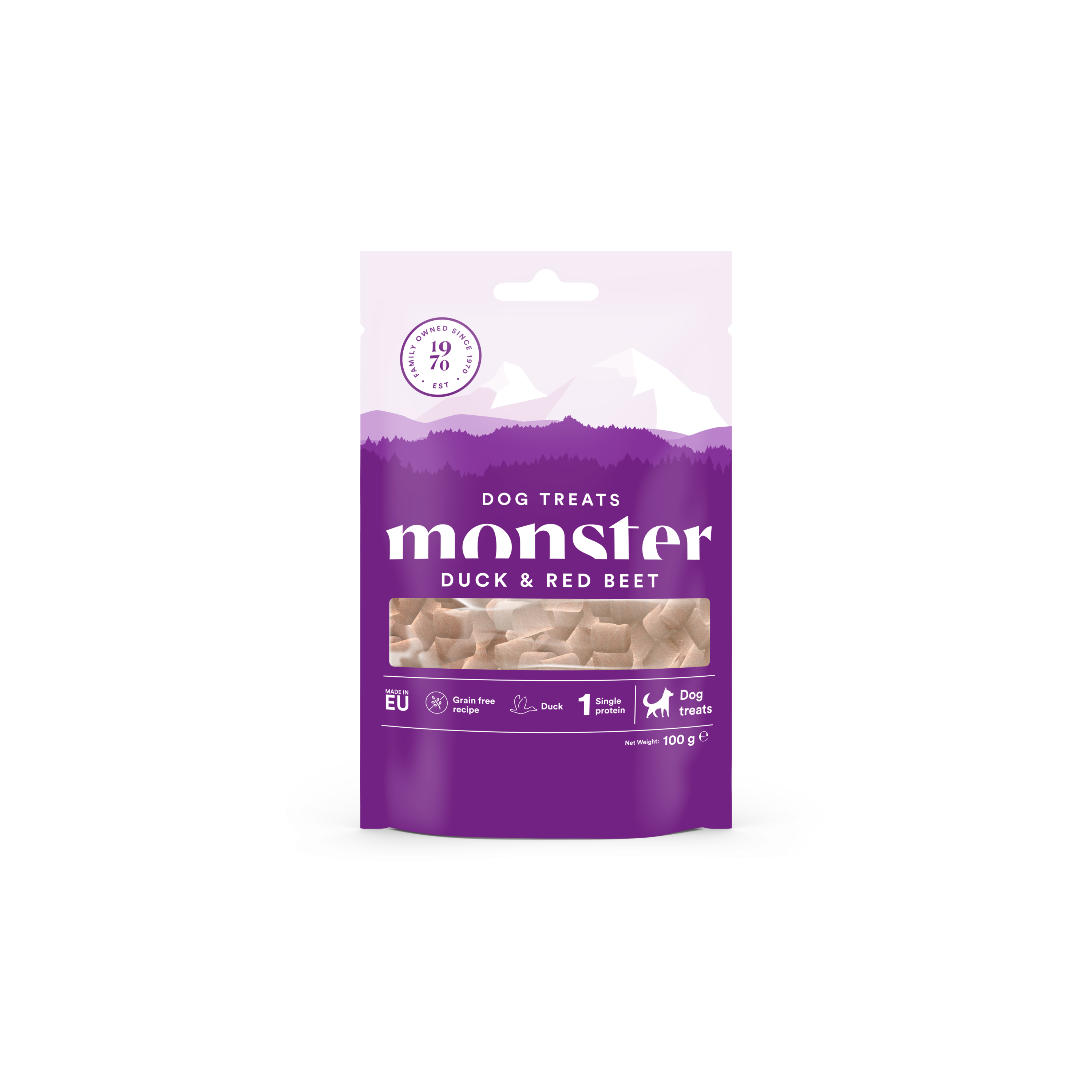 Monster Treats Duck & Red Beet on terveellinen koulutusnami tai hemmotteluherkku.Muhkea ja herkullinen koostumus.