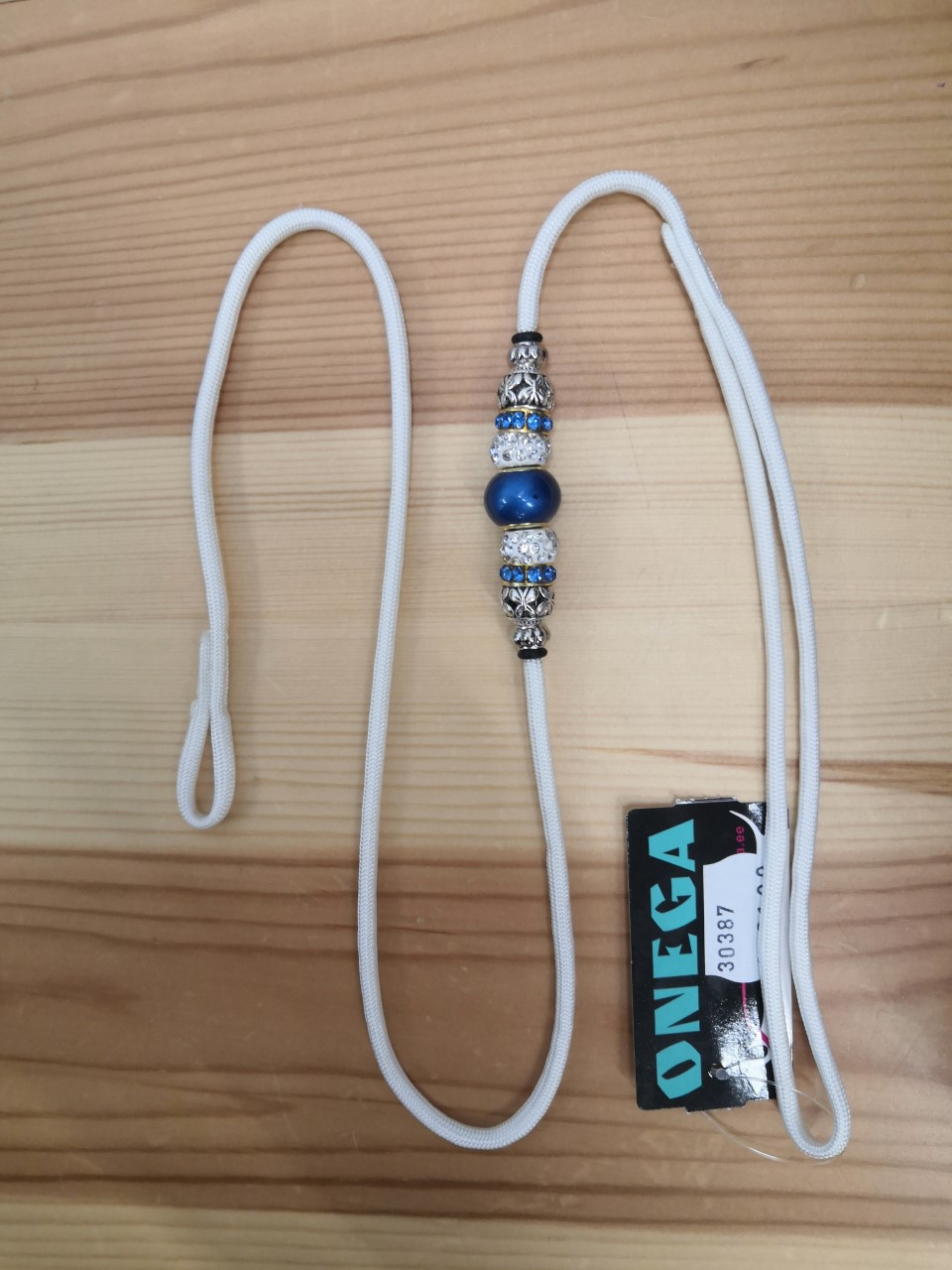 Näyttelyhihna ketjulle 3mm/80cm valkoinen hihna sinisin koristekivin Onega