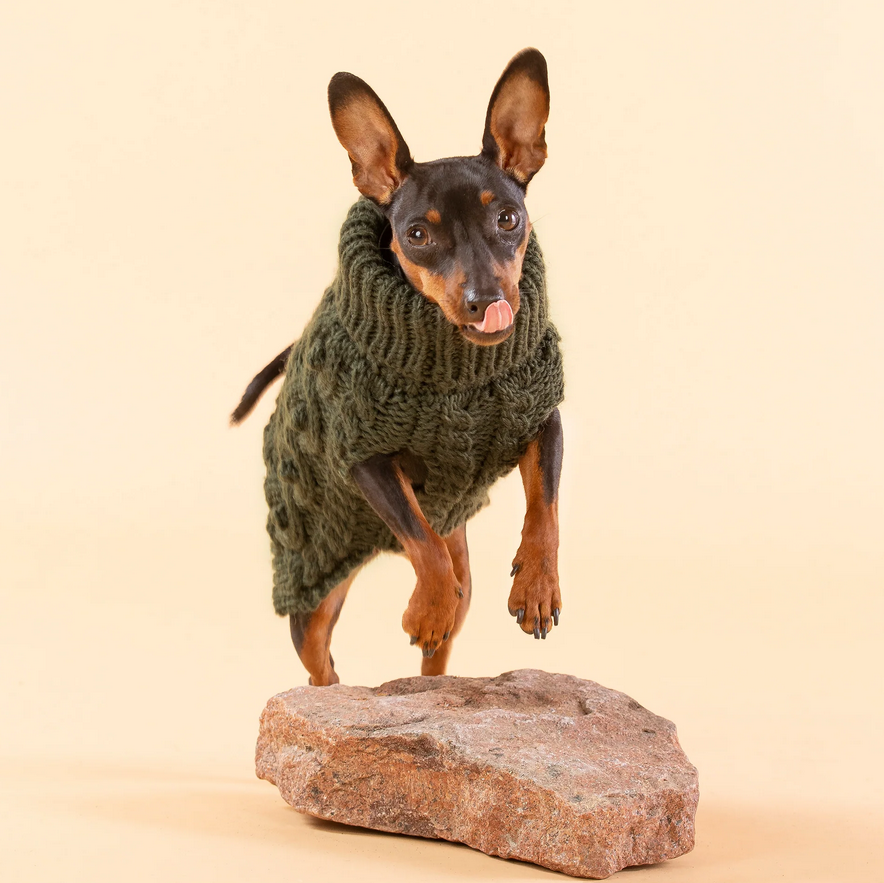 Paikka Handmade Knit Sweater on käsin kudottu, kaunis ja paksu villasekoiteneule koirille, joka tarjoaa lämpöä ja mukavuutta kylmillä säillä. Sen valmistuksessa käytetty villasekoitelanka yhdistää villan lämmittävät ja kosteutta hylkivät ominaisuudet sekä tekokuitujen keveyden ja kestävyyden. Tämä neulepaita ei ainoastaan pidä koirasi lämpimänä, vaan myös mukautuu täydellisesti sen vartaloon, tarjoten erinomaisen käyttömukavuuden. Paidan huolellisesti suunniteltu palmikkokuviointi ja viehättävät yksityiskohdat tuovat siihen tyylikkään ilmeen. Jokainen paita on käsintehty ja siten ainutlaatuinen.