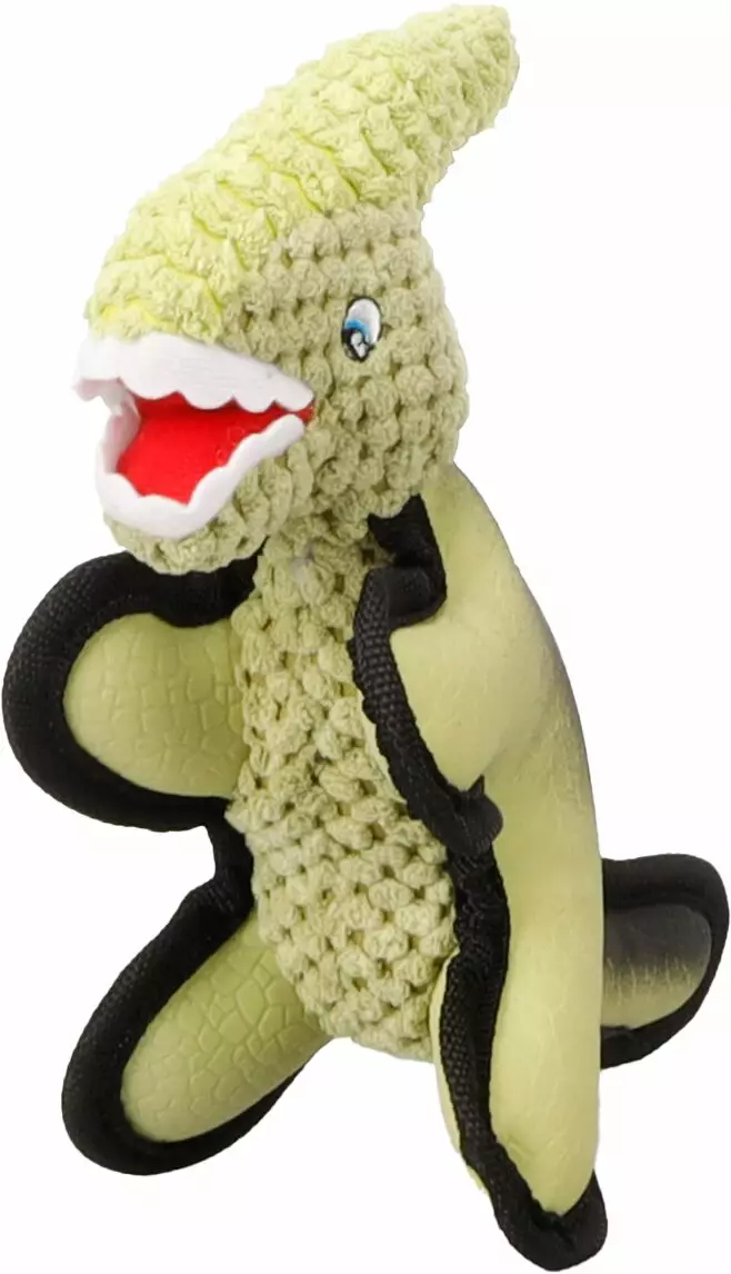 Rohkea ja hauska koiranlelu seikkailunhaluisille nelijalkaisille. Saura-dinosauruslelu on valmistettu pehmeän plyyshin ja kestävän lateksin yhdistelmästä, ja se on viimeistelty huolitelluilla reunuksilla sekä vakosamettiyksityiskohdilla. Sisällä sijaitseva vinku pitää koiran mielenkiinnon yllä ja tekee leikkihetkistä entistäkin innostavampia.