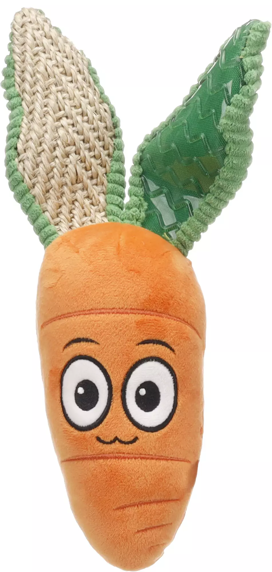 Koiran porkkananmallinen pehmolelu jonka sisällä on vinku. Lelu on tehty vaohtelevista materiaaleista ja herättää taatusti koirasi mielenkiinnon.