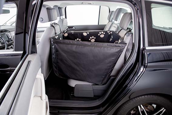 Kapeampi versio mahdollistaa henkilön istumisen koiran vieressä takapenkillä