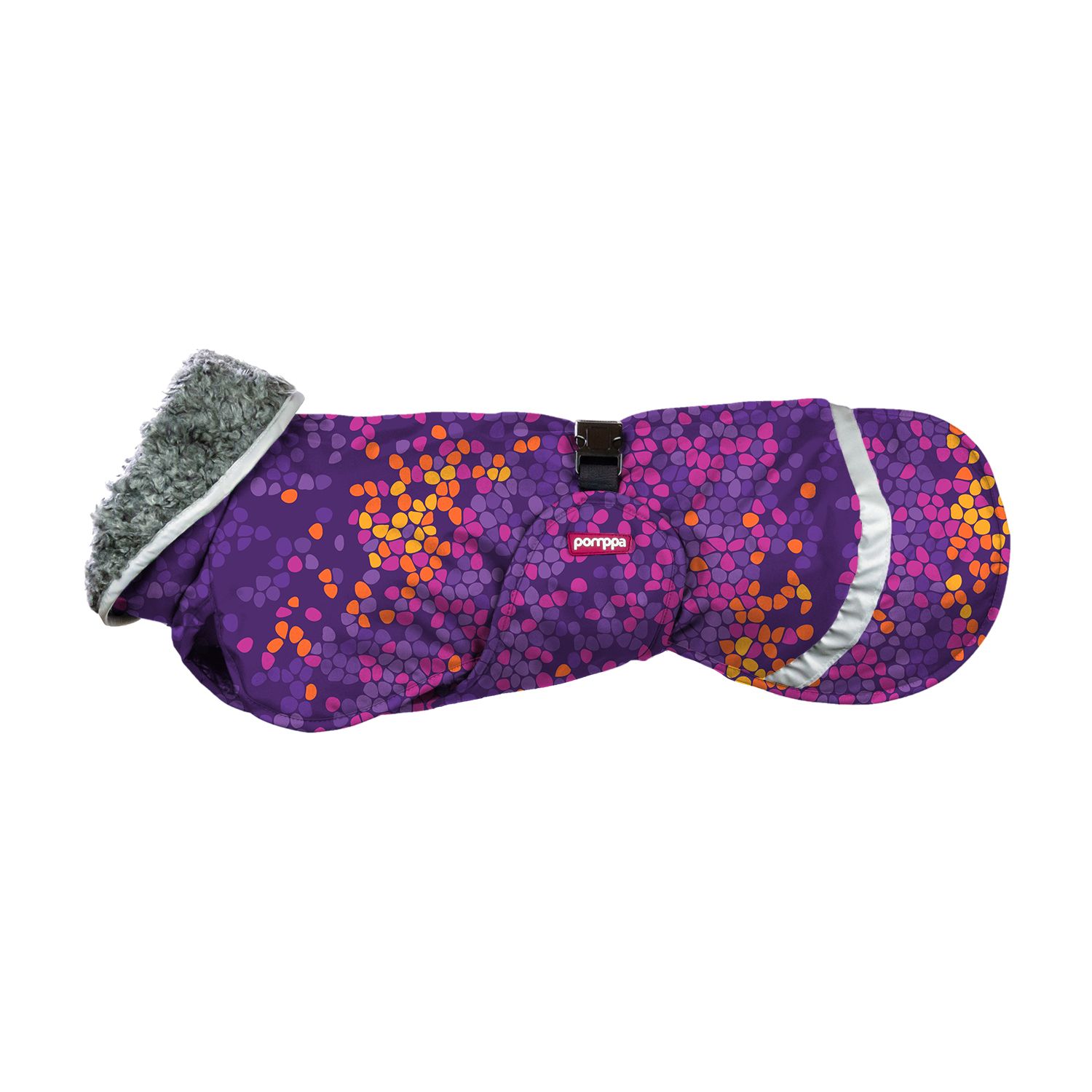 PerusPomppa on lämmin ja monipuolinen talvitakki, joka sopii kaikenkarvaisille koirille kylmään vuodenaikaan. Takin vedenpitävä ja kestävä pintakangas suojaa koiraa vesi-, räntä- ja lumisateelta. Muhkea teddyvuori pitää koiran lämpimänä niin kovalla pakkasella kuin hyytävässä viimassa. Sähköistymättömien materiaalien ansiosta teddyvuori ei takuta pitkäkarvaisenkaan koiran turkkia.