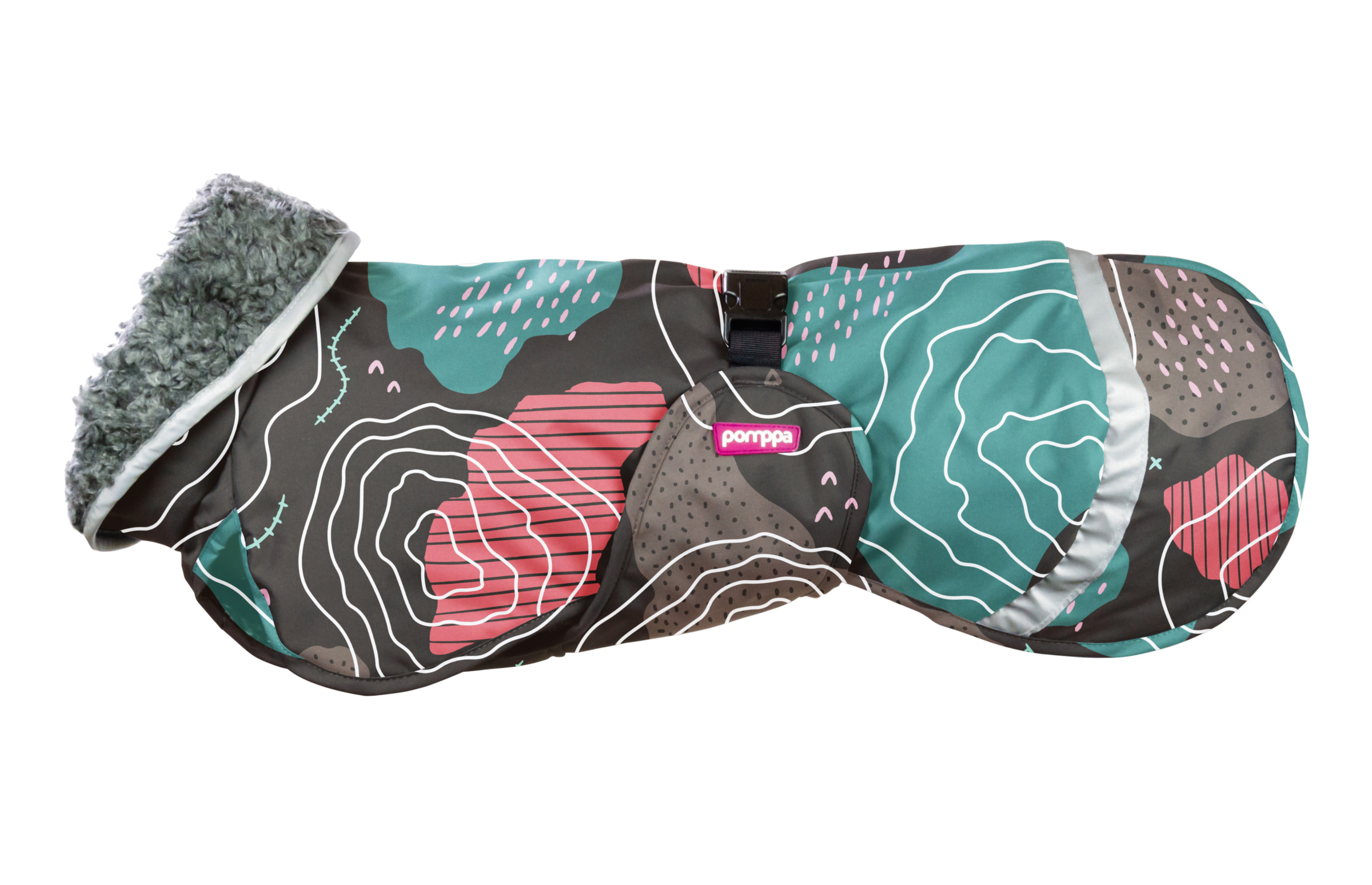 PerusPomppa on lämmin ja monipuolinen talvitakki, joka sopii kaikenkarvaisille koirille kylmään vuodenaikaan. Takin vedenpitävä ja kestävä pintakangas suojaa koiraa vesi-, räntä- ja lumisateelta. Muhkea teddyvuori pitää koiran lämpimänä niin kovalla pakkasella kuin hyytävässä viimassa. Sähköistymättömien materiaalien ansiosta teddyvuori ei takuta pitkäkarvaisenkaan koiran turkkia.