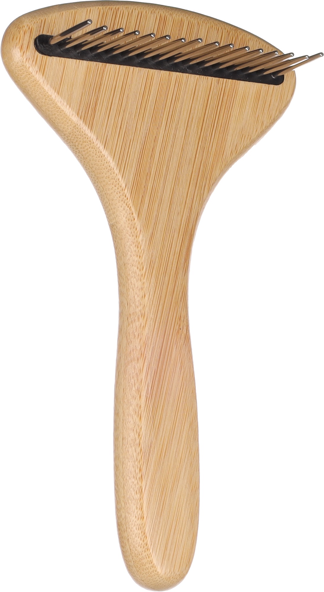 Ympäristäystävällisestä bambusta valmistettu hara pohjavilla poistoon sekä takkujen selvittämiseen. Pyöristetyt ja pyörivät piikit toimivat hellävaraisesti vahingoittamatta ihoa.