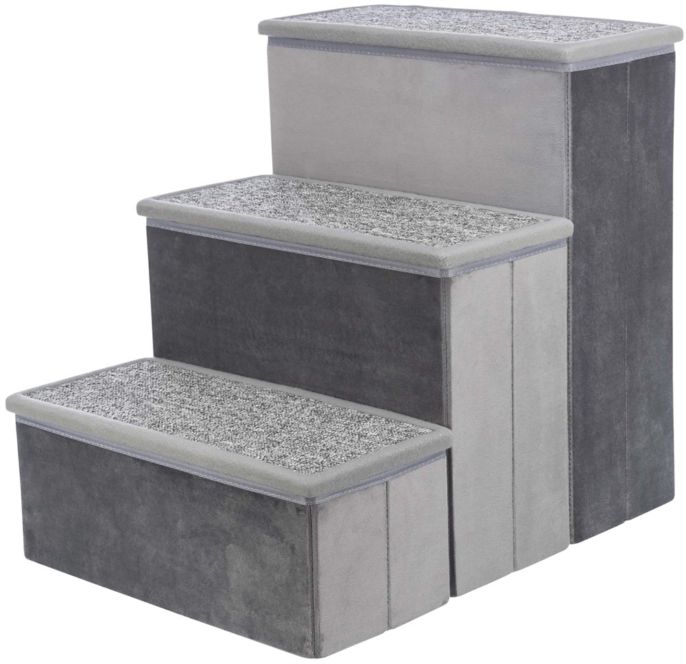 Kätevät lemmikkiportaat, askelmissa karkeamapaa kangasta estämästä liukastumisen sekä säilytystilaa. Kestää jopa 50kg painon.