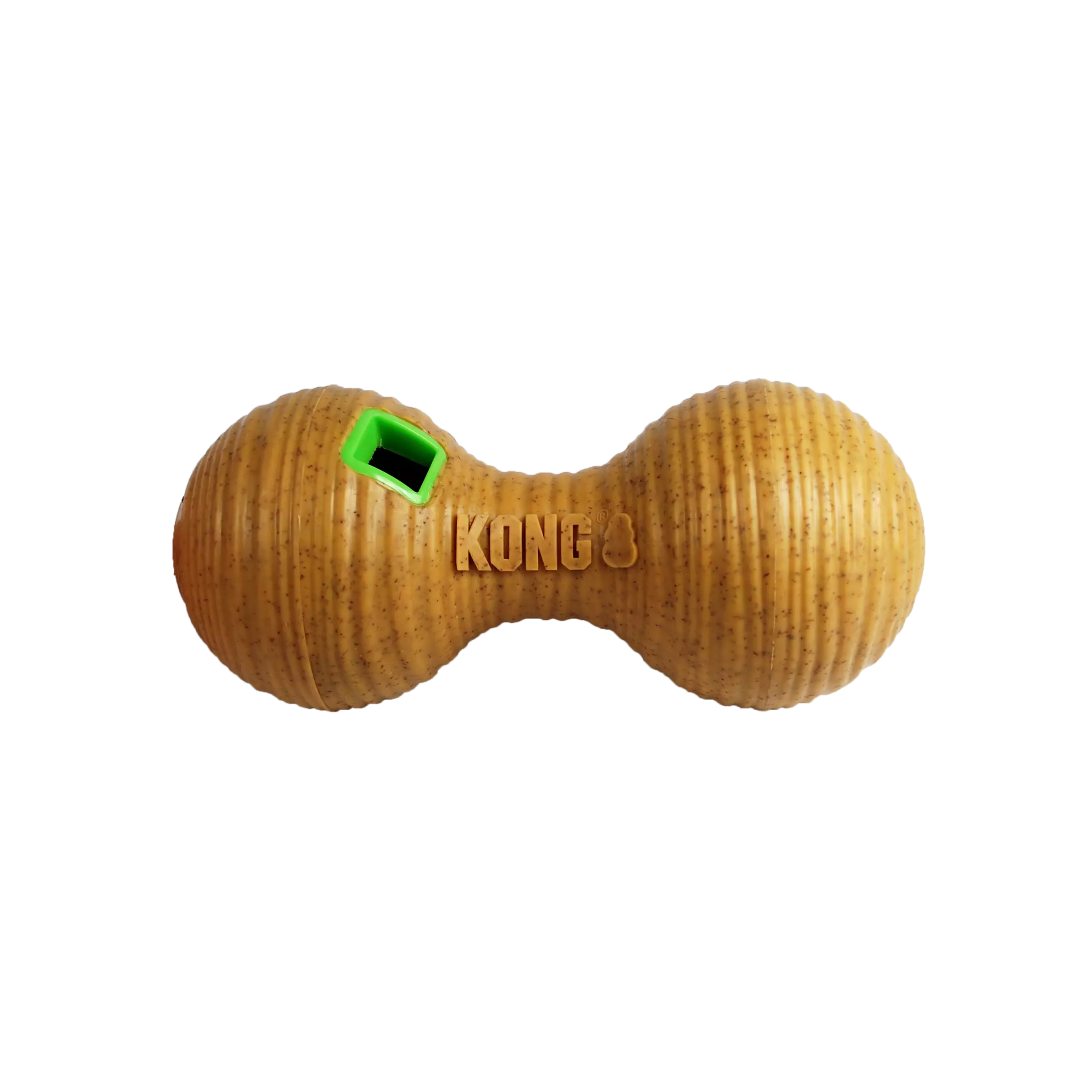 Bambupunnuksen saat avattua päistäja täytä se nappuloilla tai herkuilla, ja vastustamattoman arvaamaton tapa, jolla KONG Bamboo Dumbbell annostelee herkkuja, saa koirat innostumaan leikistä, joka aktivoi sekä kehoa että mieltä.