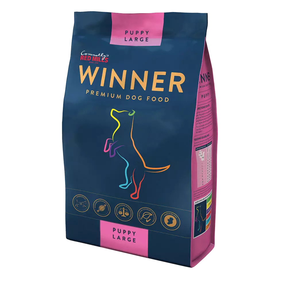 Winner Large Puppy on isojen rotujen pennuille suunniteltu täysravinto. Maukas resepti sisältää tasapainoisesti kalsiumia ja fosforia tukemaan luuston kasvua.