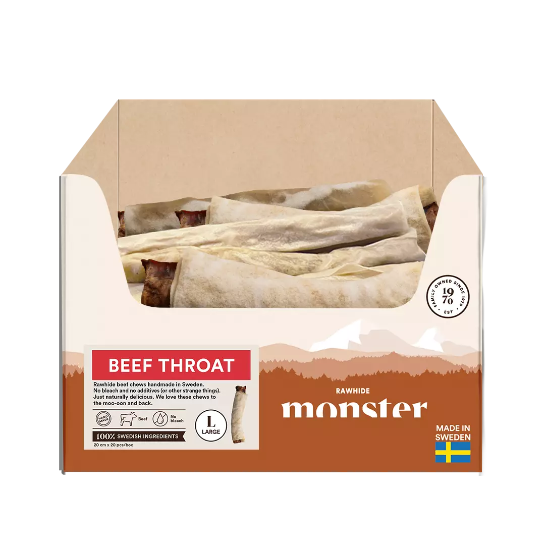Ruotsissa käsityönä valmistetut Rawhide naudannahkarullat, joissa täytteenä henkitorvea. Ilman valkaisu- ja lisäaineita. Hiuksia nostattavan hyvää ruoansulatukselle.