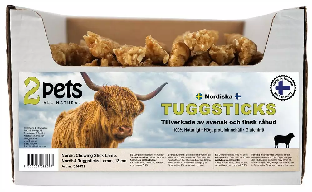2Pets Nordic Chew Sticks valmistettu ruotsalaisesta ja suomalaisesta raakanahasta.