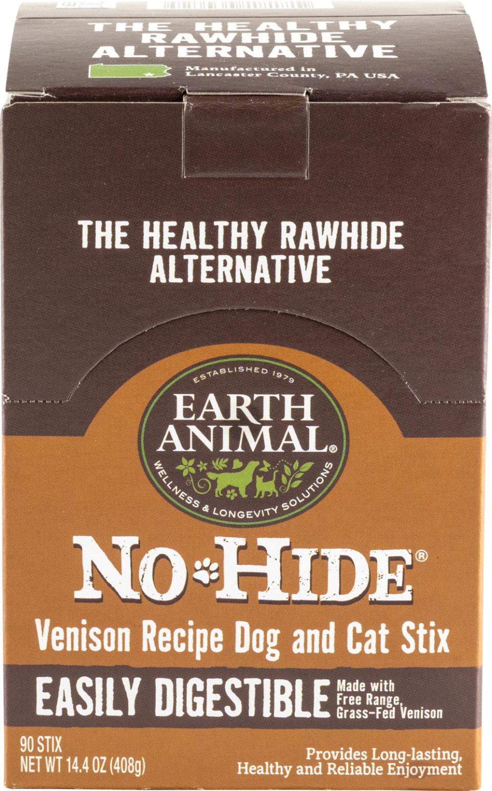 Earth Animal No-Hide Venison Recipe Dog and Cat Stix täydellinen purutikku pienille koirille (ja kissoille), jotka tarvitsevat maukasta pureskeltavaa.