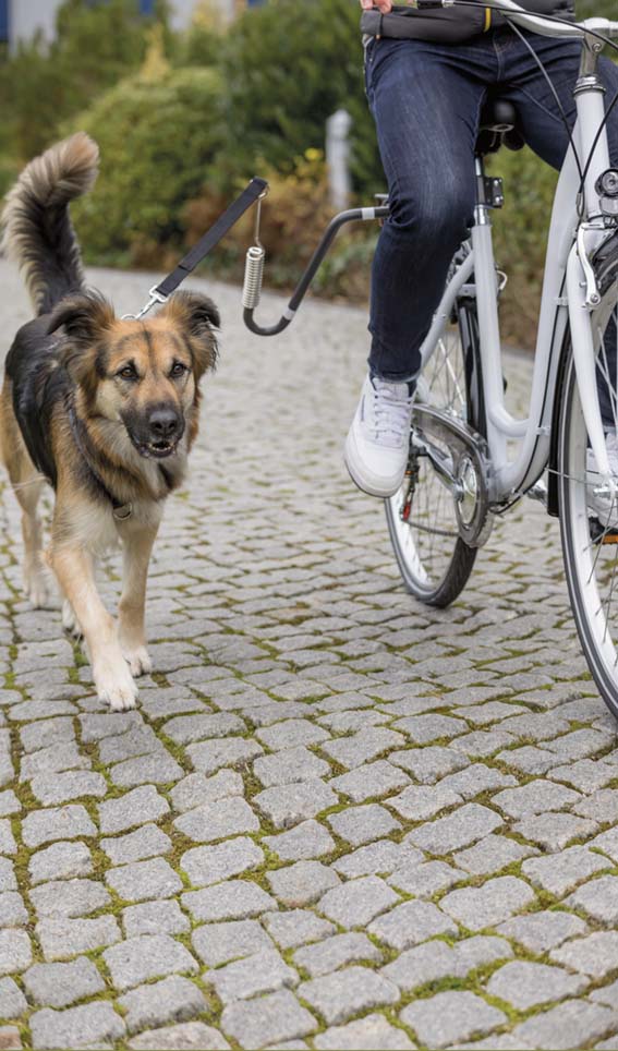Polkupyöräteline U-malli koiran ulkoiluttamiseen pyörällä. T-haarapidike mahdollistaa molemmin puolisen käytön.