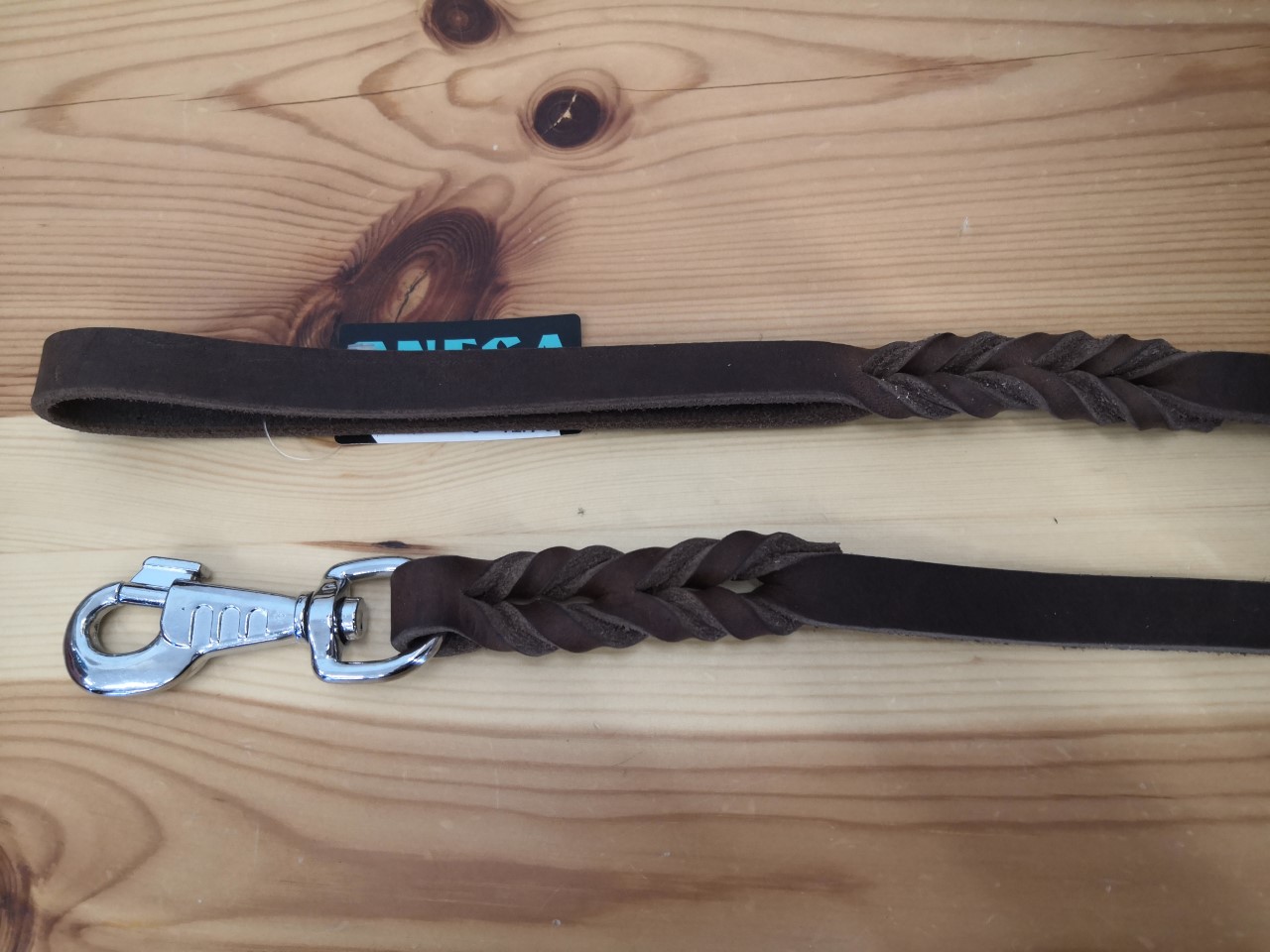 Rasvanahkainen talutin, jossa on pistoolilukko. Hihnan leveys on 16mm ja sen kokonaispituus on 180cm. Rasvanahkainen talutin on miellyttävä kädessä ja kestävä käytössä.