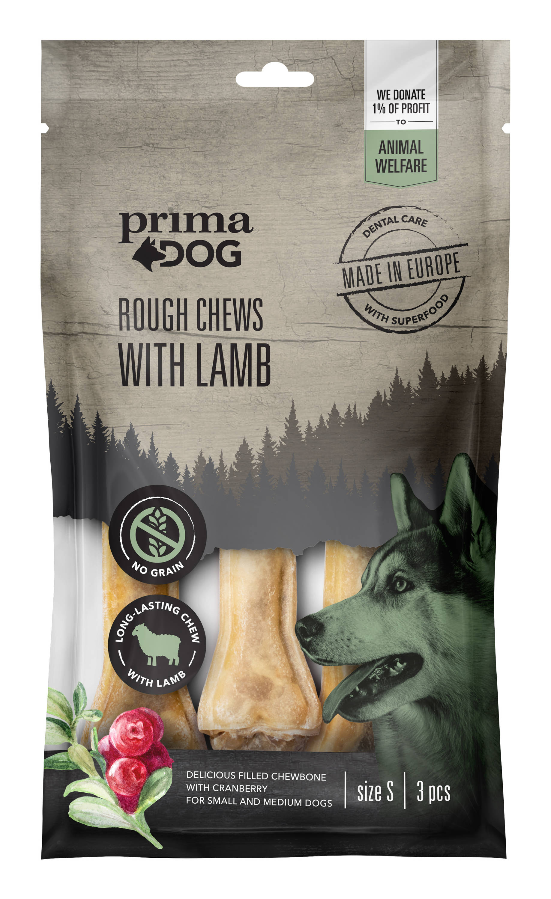 PrimaDog Rough Chews Lammas & Karpalo -puruluu koiralle