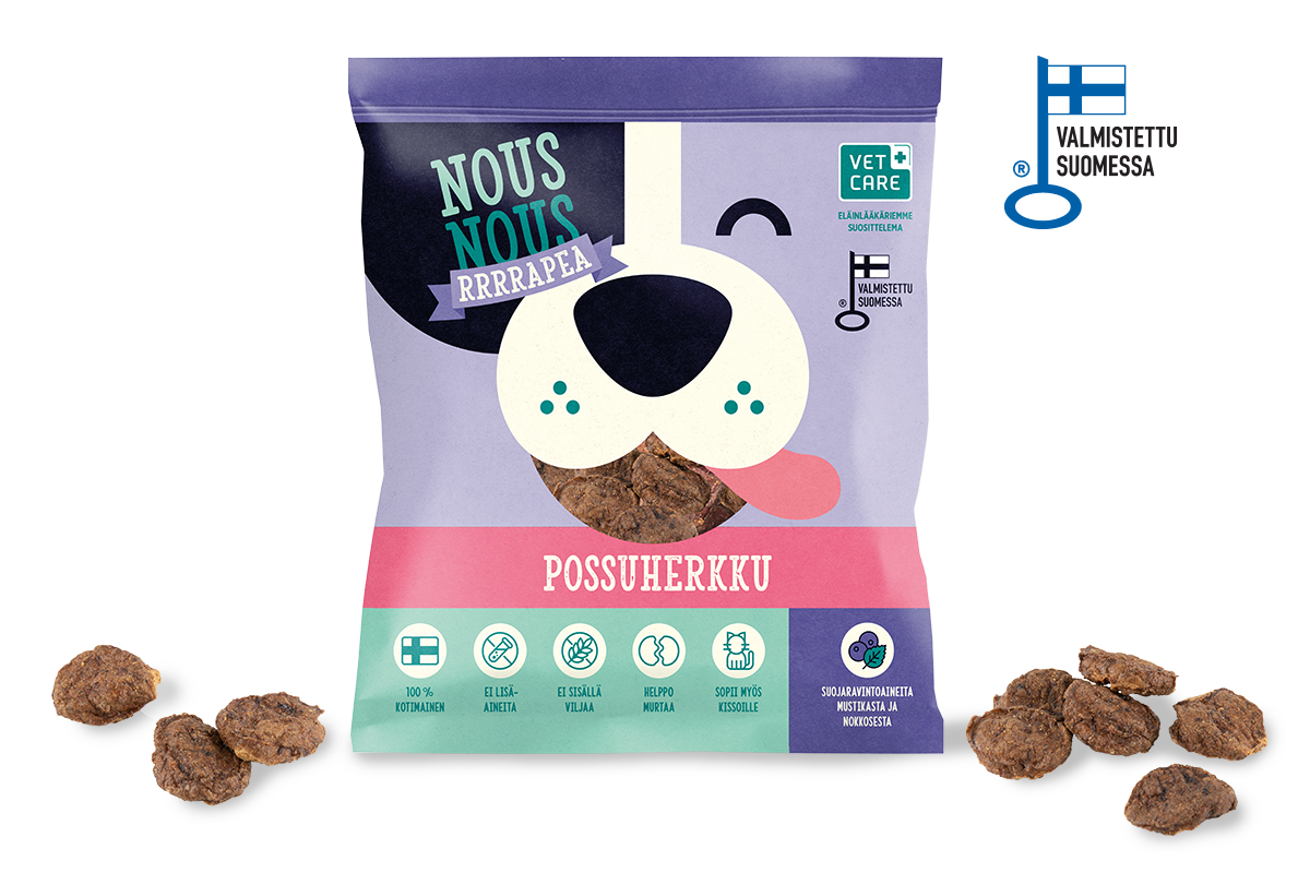 NousNous – Rapea Possuherkku sopii koiran koulutustilanteisiin, terveelliseksi välipalaksi ja aktivointiin.