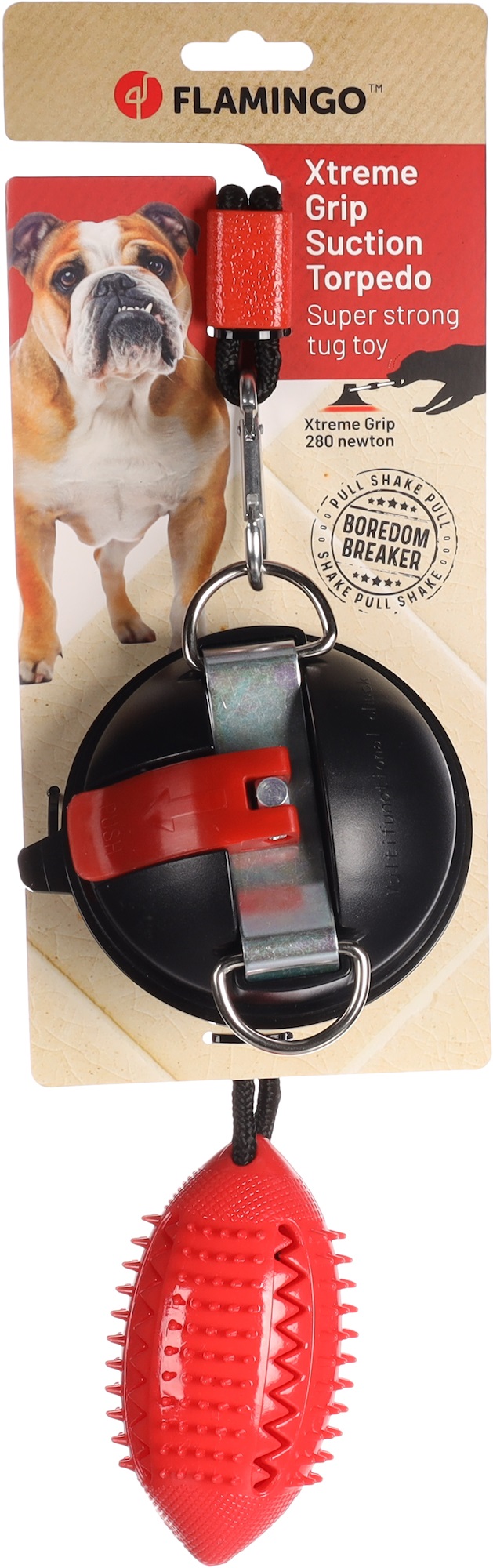Muro Rugby-pallo on täydellinen lelu koirallesi! Voit kiinnittää sen turvallisesti imukupilla ja klipsillä. Täytä se herkuilla tai levitettävällä tahnalla lisähauskuutta varten.