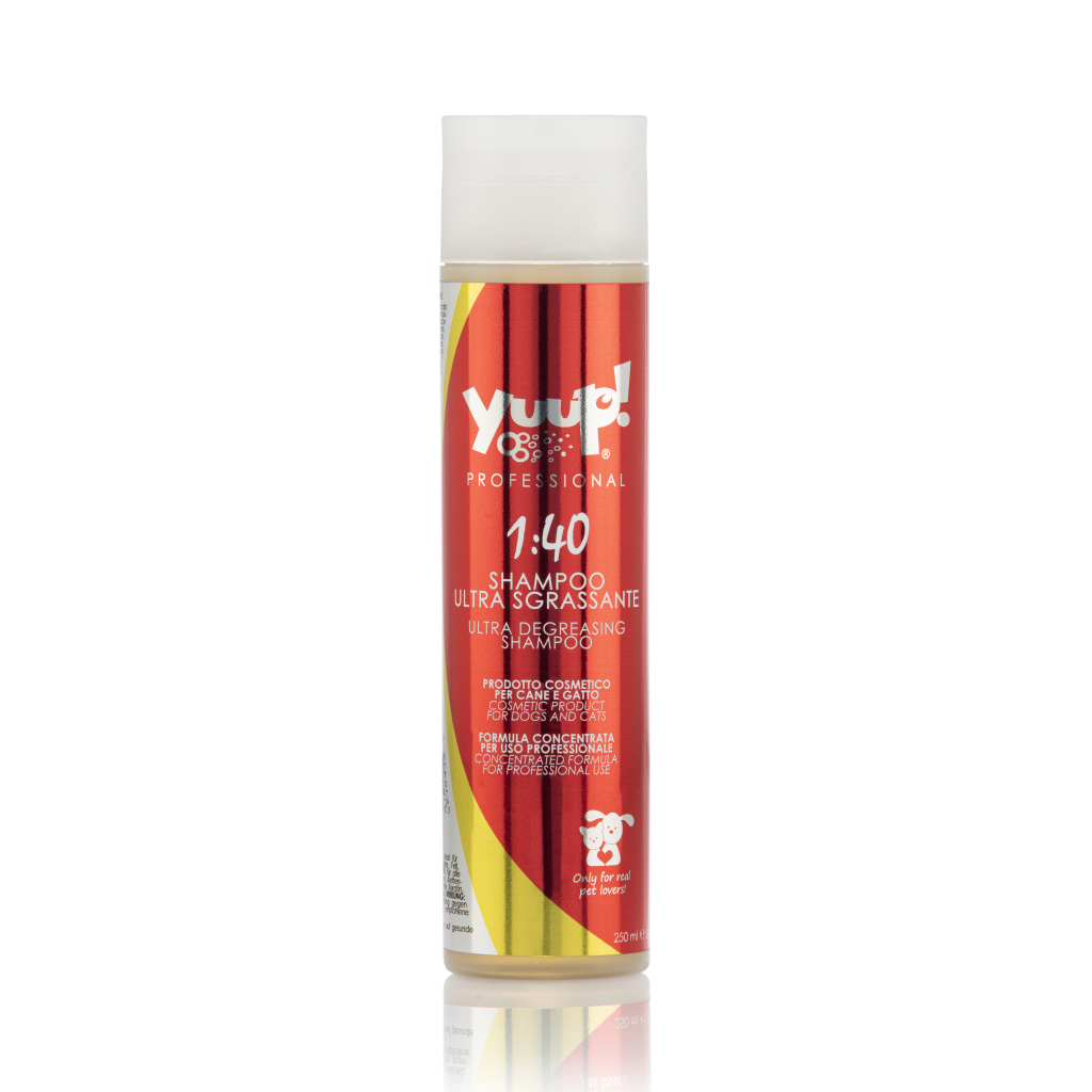 Yuup! PROFESSIONAL -sarjan laadukas erittäin vahva rasvanpoistoon suunniteltu shampoo. Irrottaa rasvaa todella tehokkaasti ja on tarkoitettu käytettäväksi silloin kun tarve on suurin – kun turkki on päässyt hyvin likaiseksi, siihen on ajansaatossa kertynyt paljon rasvaa, tai kun turkki on alkanut haista pahalle.