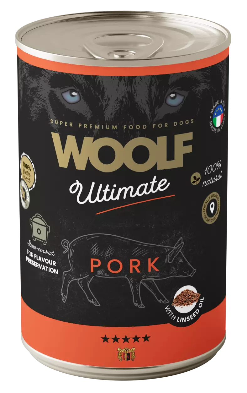 Pork & Linseed oil 400g Ultimate Canned Dogfood Woolf