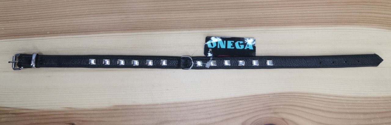 Nahkapanta, joka on vuorattu pehmeällä nahalla. Koristeena metallisia neliöitä.