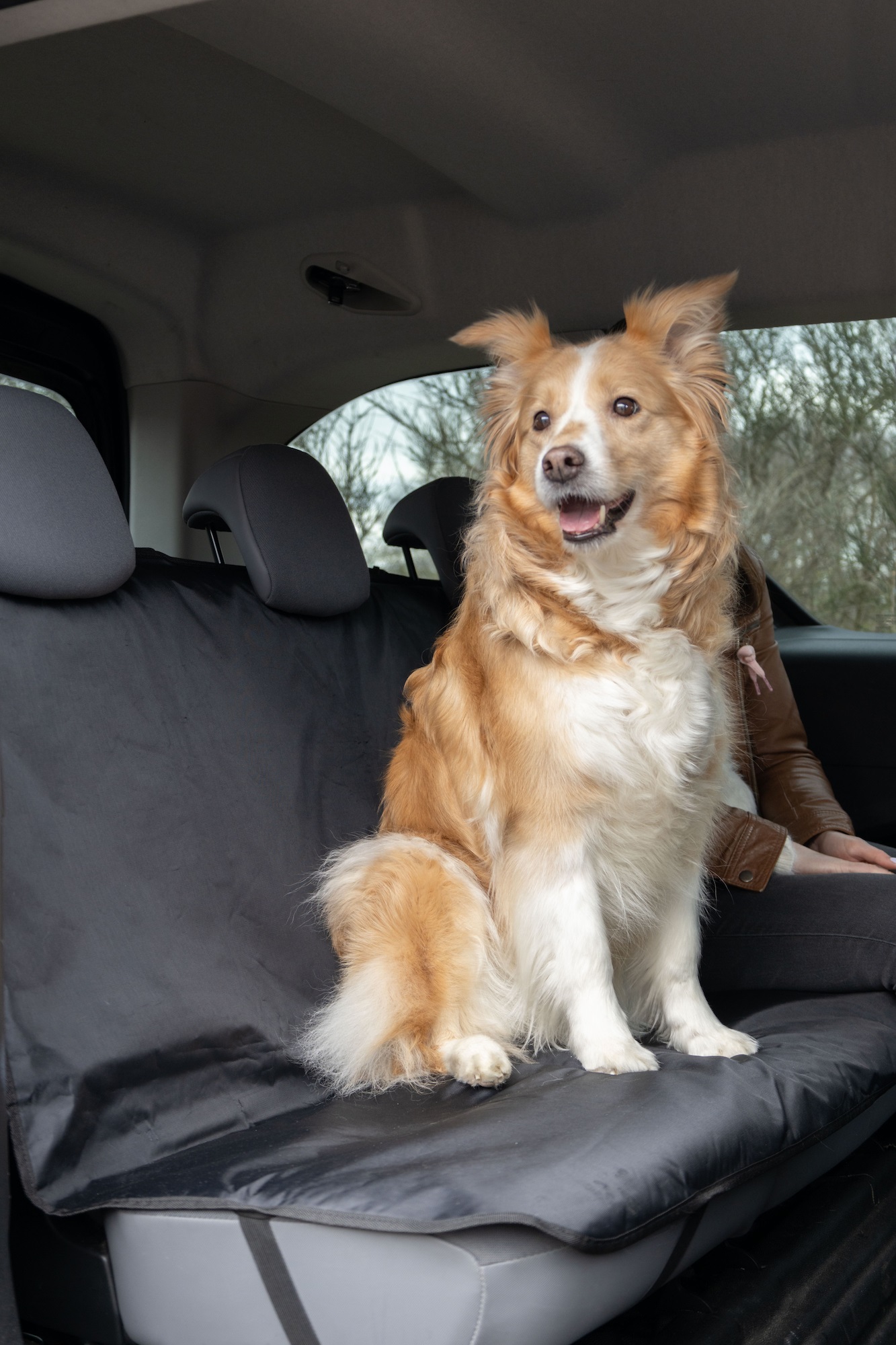 Kätevä autonpenkinsuoja takaistuimille, kiinnitetään niskatukiin, valmiit aukot esim. turvavöille. Pohjana hieman paksumpi materiaali, joka toimii hyvin liukuesteenä.
