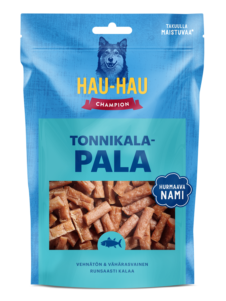 Pieneksi pilkottu Hau-Hau Champion Tonnikalapala on herkullinen klassikkonami, joka on löytänyt tiensä koiraharrastajien suosikiksi. Puolikostea koostumus ja tonnikalan herkullinen maku tekevät tästä makupalasta lyömättömän treeninamin. Tonnikalapalat sopivat sekä hännänheiluttajasi herkutteluhetkiin että koiraharrastuksiin. Vähärasvaiset koiran makupalat eivät sisällä lainkaan vehnää.