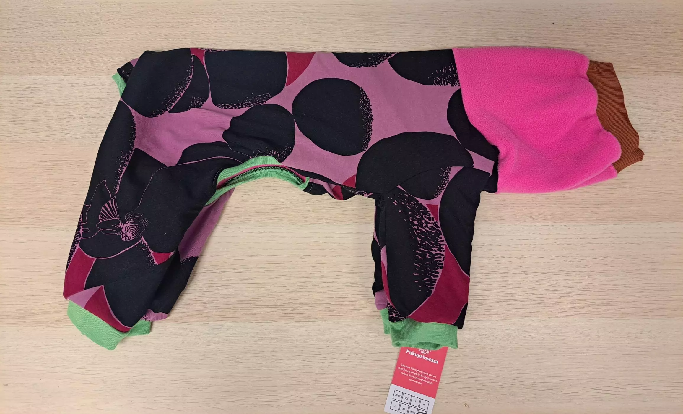 Koirien muumi-kuviollinen trikoohaalari fleecevuorella on Suomessa käsityönä valmistettu, lämpimämpi vaihtoehto viileisiin päiviin. Selän pituus 45cm.