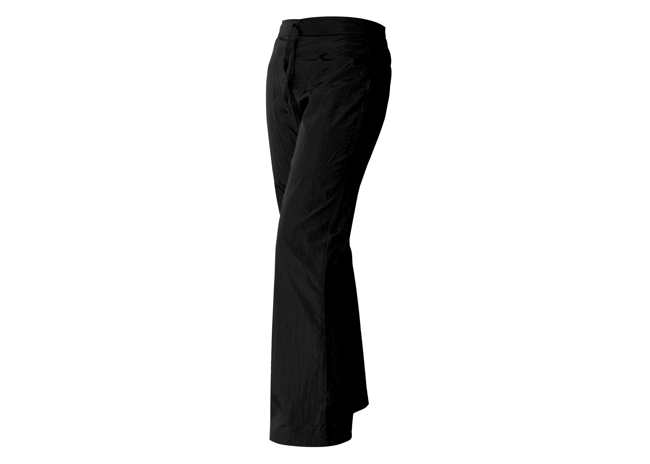 Naisten trimmaushousut, joissa leveät lahkeet. Matala vyötärö ja viimeistelty vyötärönauha.