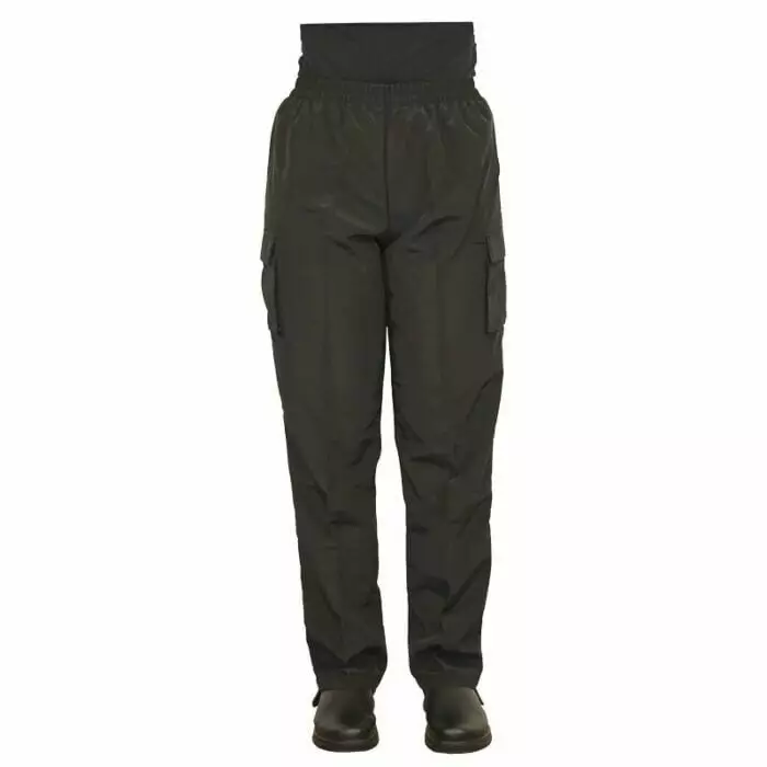 Unisex-malli sopii sekä naisille että miehille. Joustava vyötärö lisää käyttömukavuutta, ja suoralinjainen lahjemalli mahdollistaa helpon lyhentämisen tarvittaessa. Housut on valmistettu karvaa hylkivästä, kevyestä materiaalista, joka pysyy siistinä pidempään – suuri etu trimmaamoympäristössä.