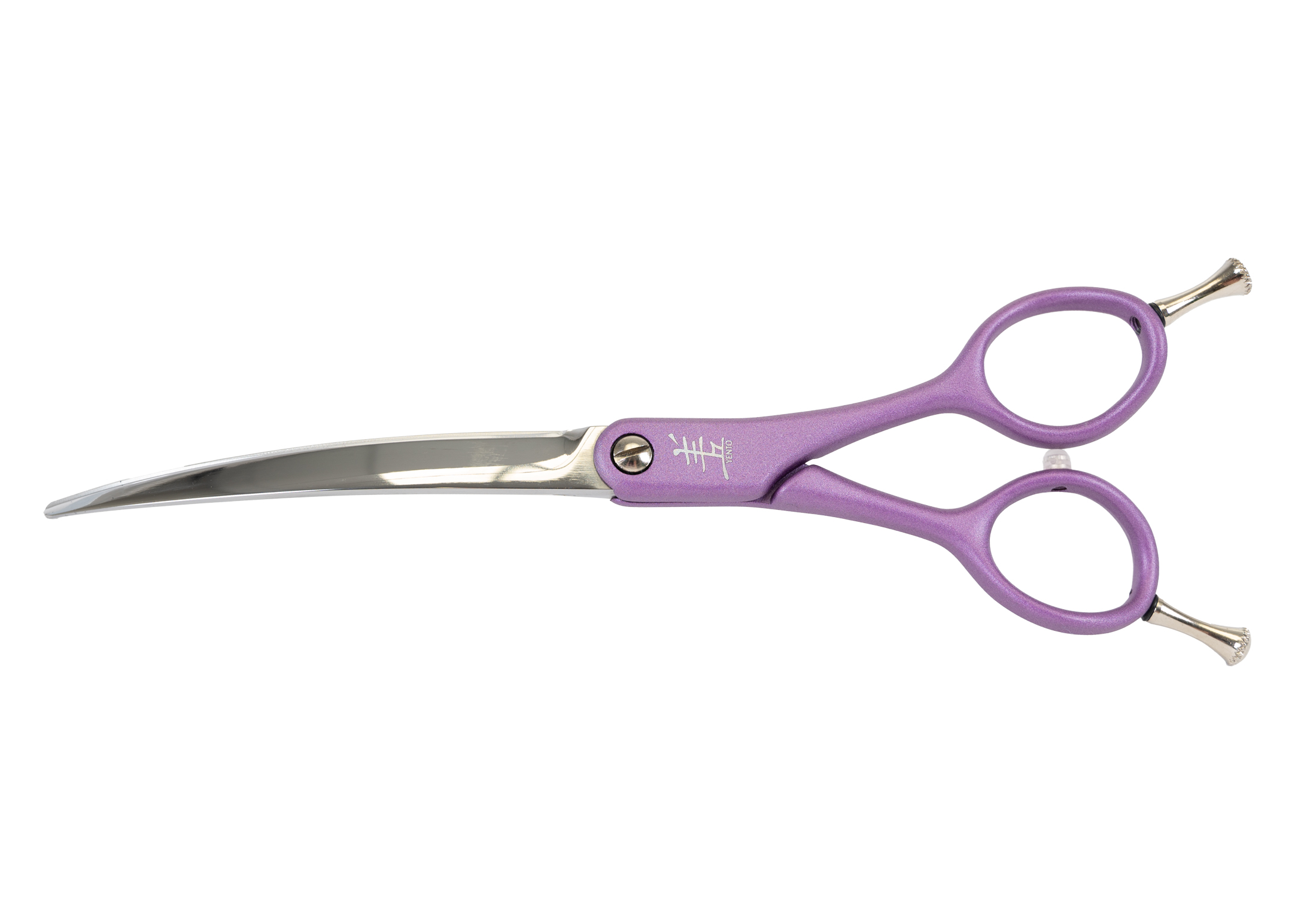 Kaarevat sakset mm. turkin muotoiluun ja lyhentämiseen.
