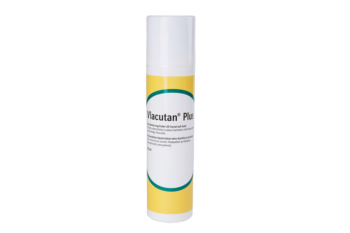 Erikoisruokavalio, nestemäinen täydennysrehu koirille ja kissoille ihon normaalin toiminnan tueksi ihotautien ja liiallisen karvanlähdön yhteydessä. Viacutan® Plus sisältää optimaalisesti välttämättömiä rasvahappoja sekä luonnollisia antioksidantteja (rosmariini, kurkuma) ylläpitämään ihon ja turkin hyvinvointia.