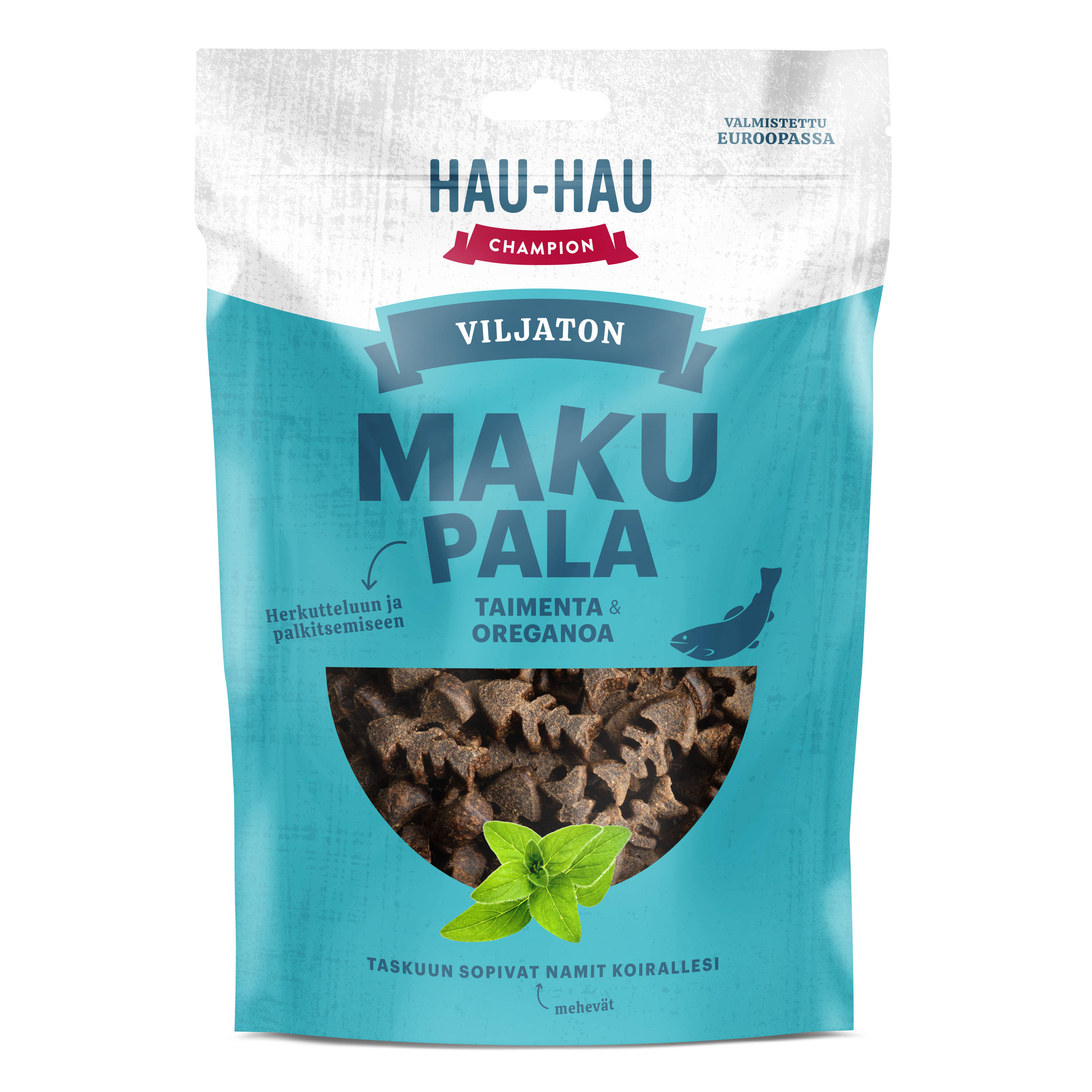 Viljattomuutensa ansiosta Hau-Hau Champion Viljaton Makupala taimenta & oreganoa voi sopia hyvin myös herkkävatsaisille koirille, minkä lisäksi makupalojen valmistuksessa ei ole käytetty lainkaan soijaa, lisättyä sokeria tai keinotekoisia maku- ja väriaineita.