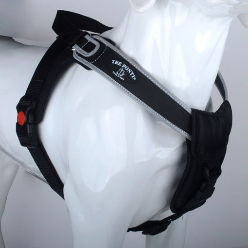 Pystysuuntainen topattu rintavyö suojaa koiraa paineelta, kun taas selän kahva tarjoaa lisäturvaa mahdollisesti vaarallisissa tilanteissa. Tuplasäädettävä vatsavyö auttaa kiinnittämään valjaat entistä paremmin ja se sopii erilaisten koiran vartalotyypeille. Valjaat ovat vieläkin turvallisemmat soljen turvapainikkeen ansiosta. Heijastava terereunus: