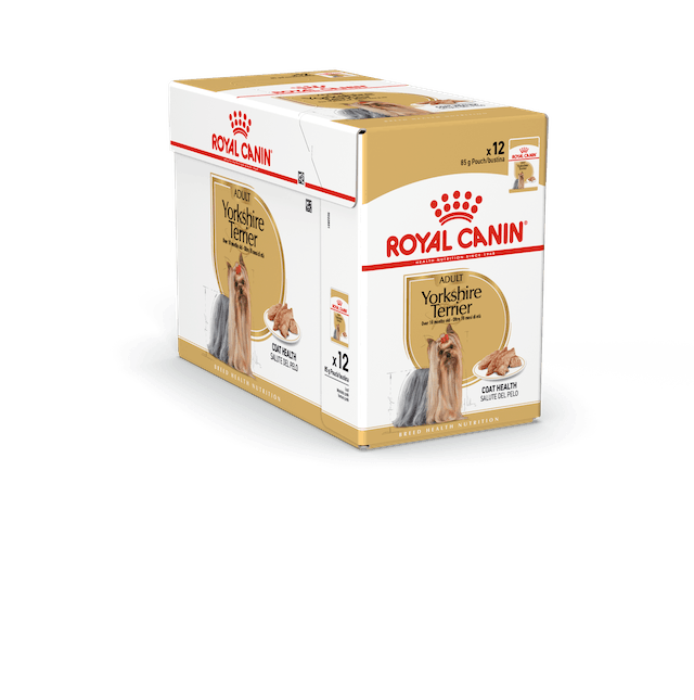 ROYAL CANIN® Yorkshire Terrier Loaf -säilykeruoka soveltuu yli 10 kuukauden ikäisille yorkshirenterriereille. Se on suunniteltu erityisesti täysikasvuisen koiran ravintotarpeita ajatellen. ROYAL CANIN® Yorkshire Terrier Loaf auttaa ylläpitämään yorkshirenterriereiden ihon ja pitkän turkin terveyttä ainutlaatuisella optimaalisten ravintoaineiden sekoituksella, joka auttaa pitämään turkin kiiltävänä ja silkkisenä. Tämä ruoka auttaa myös tukemaan ruoansulatuskanavan terveyttä tarkalla ravintoaineyhdistelmällä, joka on suunniteltu eritoten yorkshirenterriereille. Sen suutuntuma on räätälöity maittavuuden lisäämiseksi ja koiran ruokahalun herättelemiseksi.
