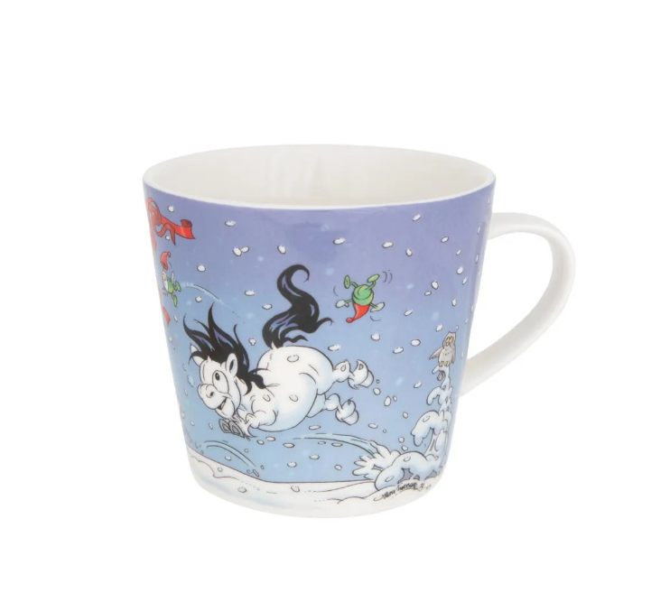 Jouluinen keraaminen muki, jonka tilavuus on 3,5 dl. Kookkaan mukin kyljissä on talvinen kuvitus Pollesta ystävineen ilakoimassa talvimaisemassa, kulkusryppään alla. Muki on sisältä puhtaan valkoinen. Kupillinen vaikkapa lämmintä kaakaota tai virkistävän viileää juomaa maistuu erityisen hyvältä Pollen seurassa. Muki ilahduttaa aamiaishetkessä, välipalalla tai iltapalalla ja se on mainio lahjaidea. Oi miten ihanaa! Maa on peittynyt valkoiseen lumivaippaan, ja lunta satelee hiljalleen koko ajan lisää. Polle ystävineen kuljeskelee ulkona, Polle riemukkaasti hyppien. Pois alta pupuset ja pienet tontut!