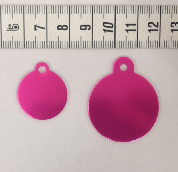 Alumiininen kaiverruslaatta pyöreä pinkki, kaksi kokoa