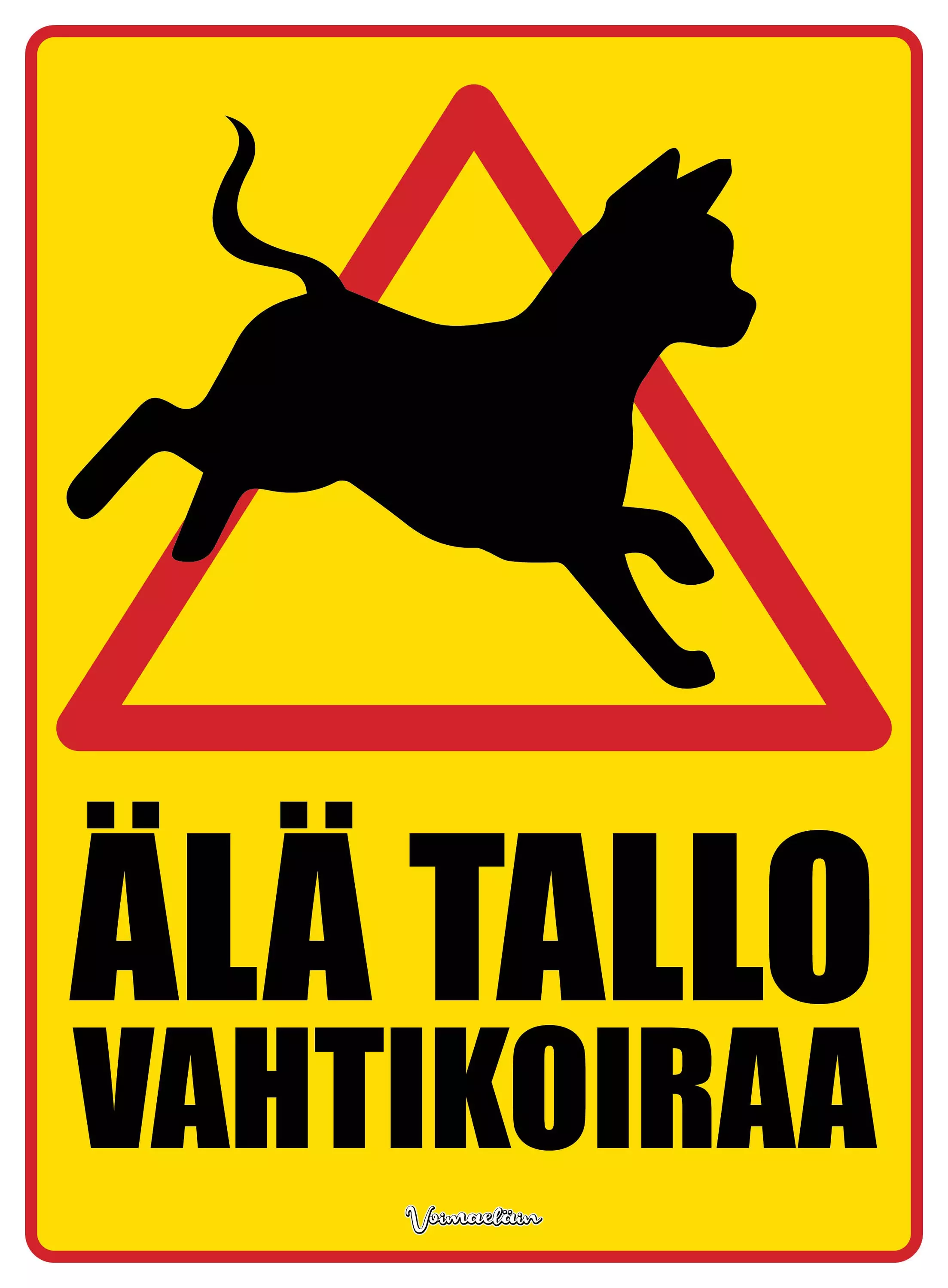 Kyltti Älä tallo vahtikoiraa! Kolmio Juokseva chihuahua