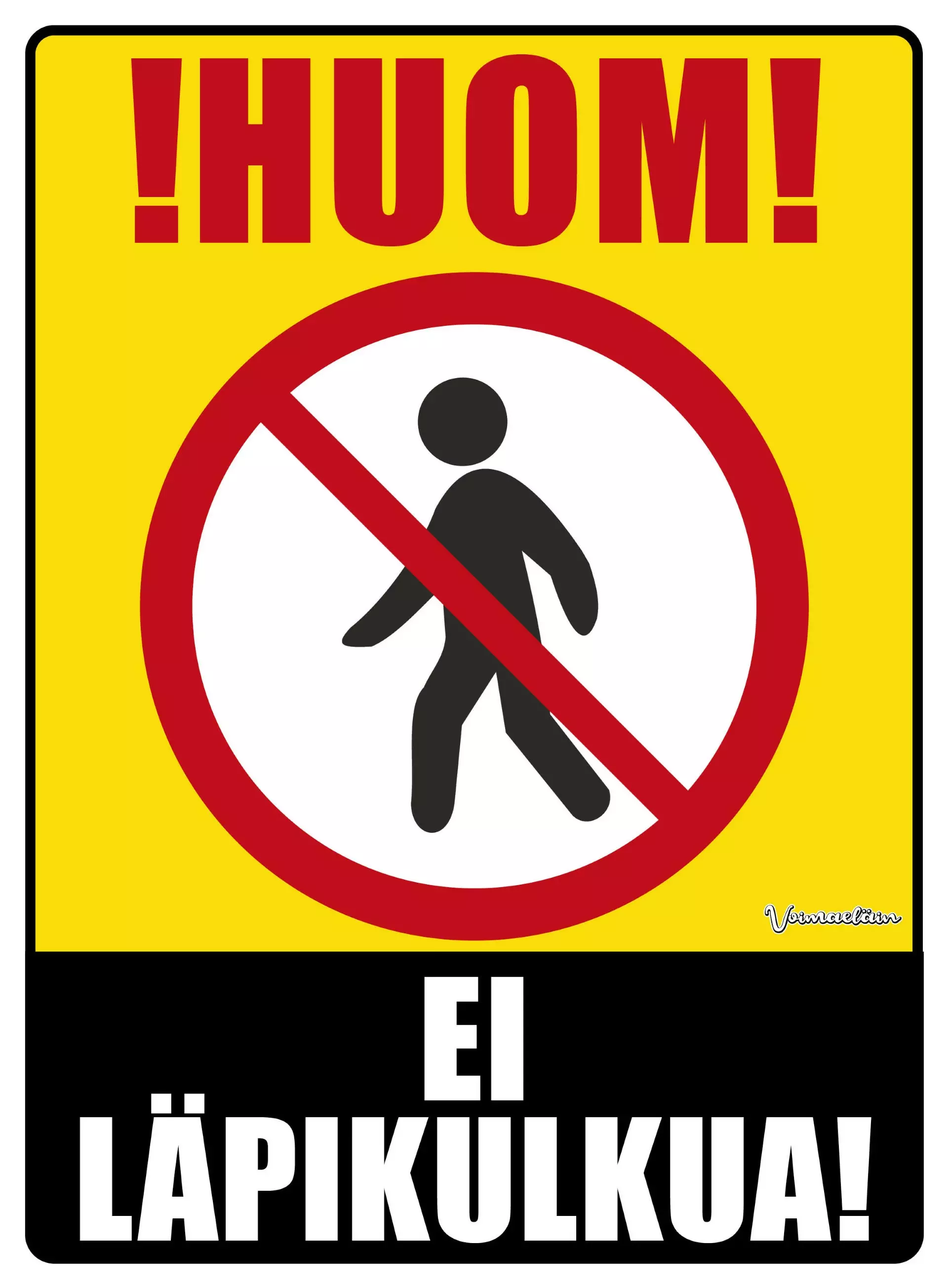 Varoituskyltti säänkestävästä polystyreenistä. Kyltin koko 26,5 x 19,5cm.