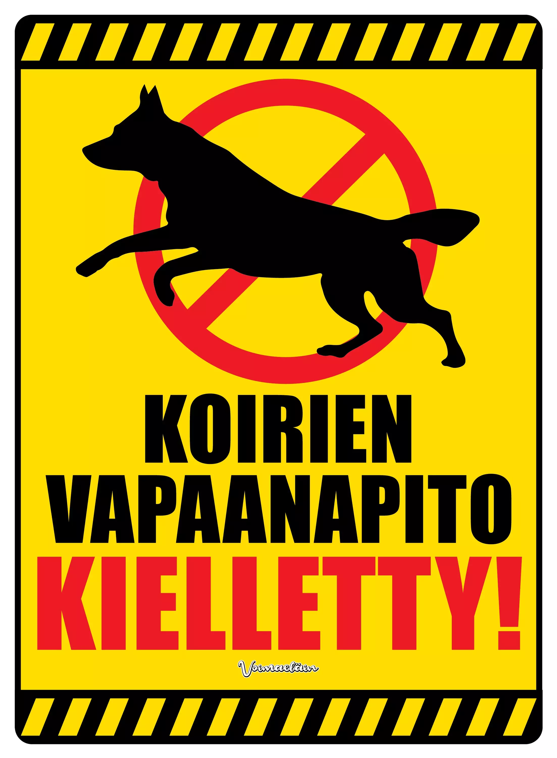 Kyltti Varoitus! Koirien vapaanapito kielletty!
