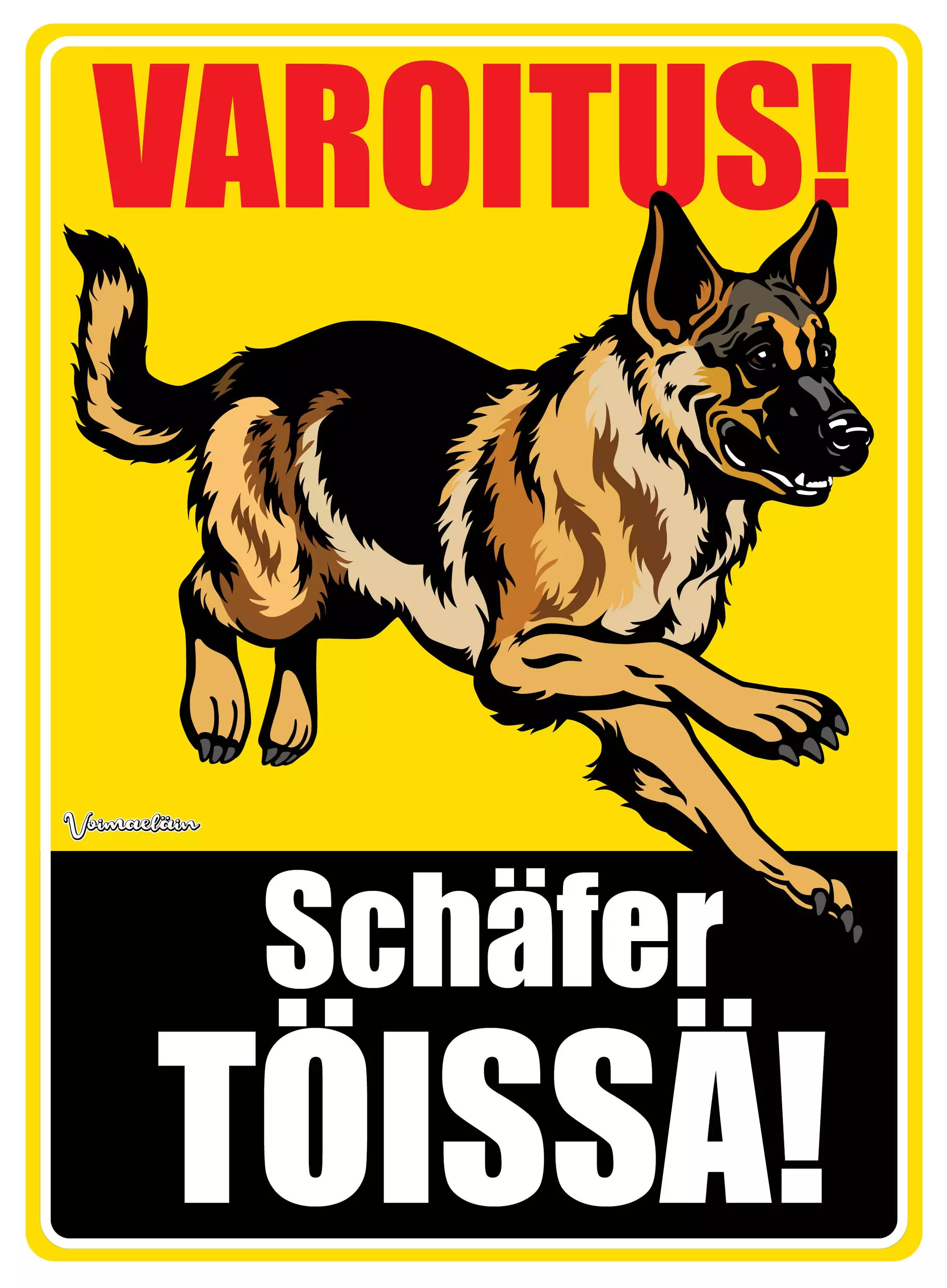 Kyltti Varoitus! Schäfer töissä!