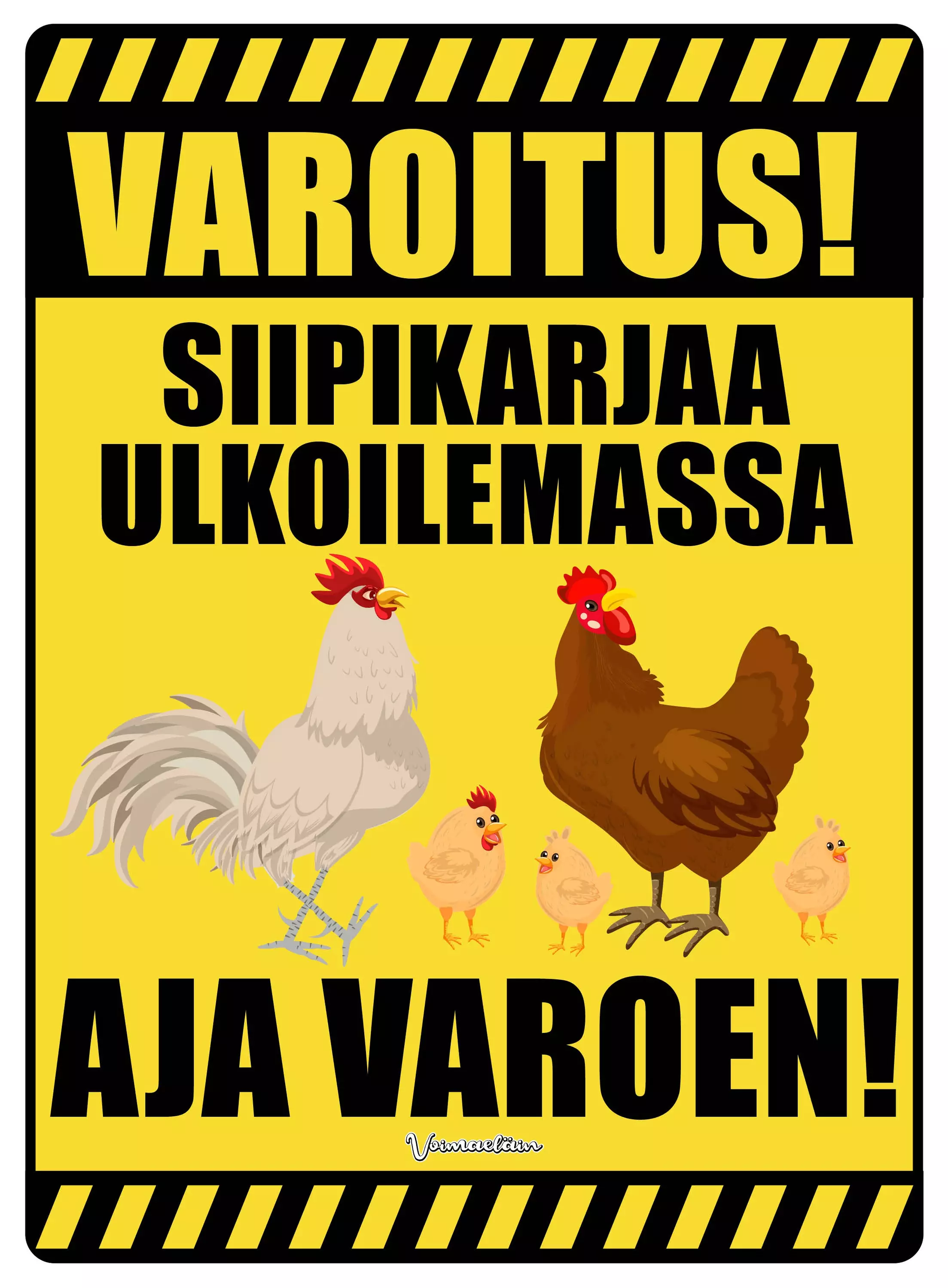 Kyltti Varoitus! Siipikarjaa ulkoilemassa Aja varoen!