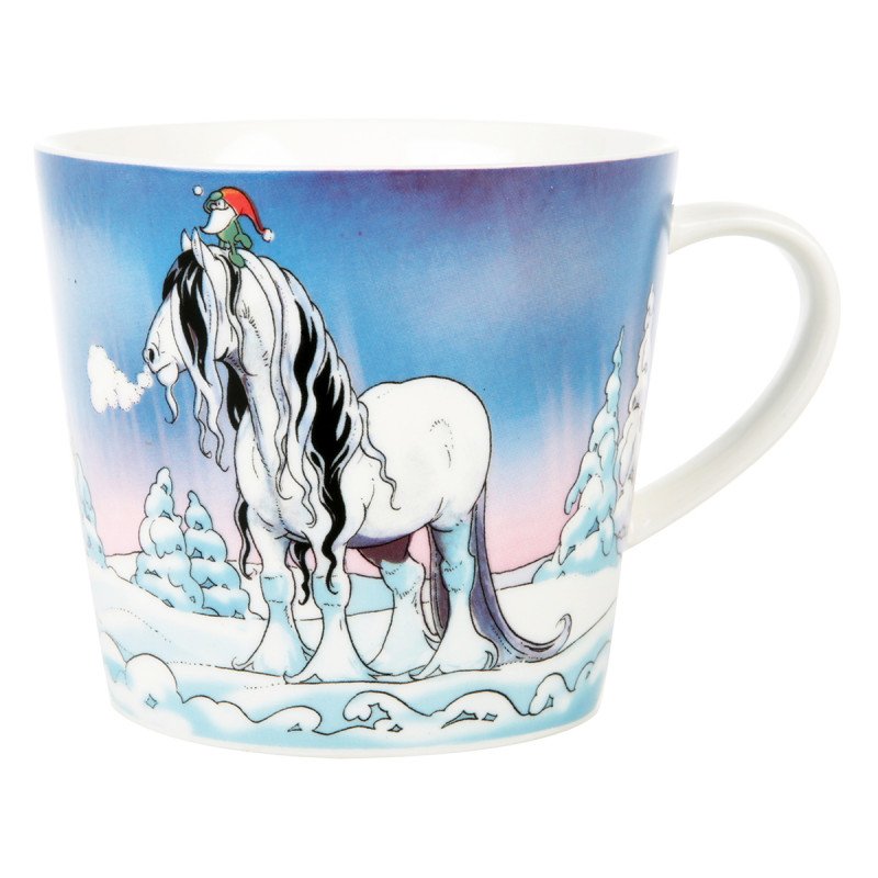 Valkoinen hevonen on seisahtunut paikoilleen katselemaan ihastuttavaa maisemaa yhdessä tontun kanssa. On taiaonomainen talvinen hetki. Muki sopii jokaiselle isolle ja pienelle hevosihmiselle, myös lahjaksi. Lena Furberg on ruotsalainen piirtäjä ja kirjailija, joka on tunnettu erityisesti hevosaiheisista sarjakuvistaan, kuten Polle.