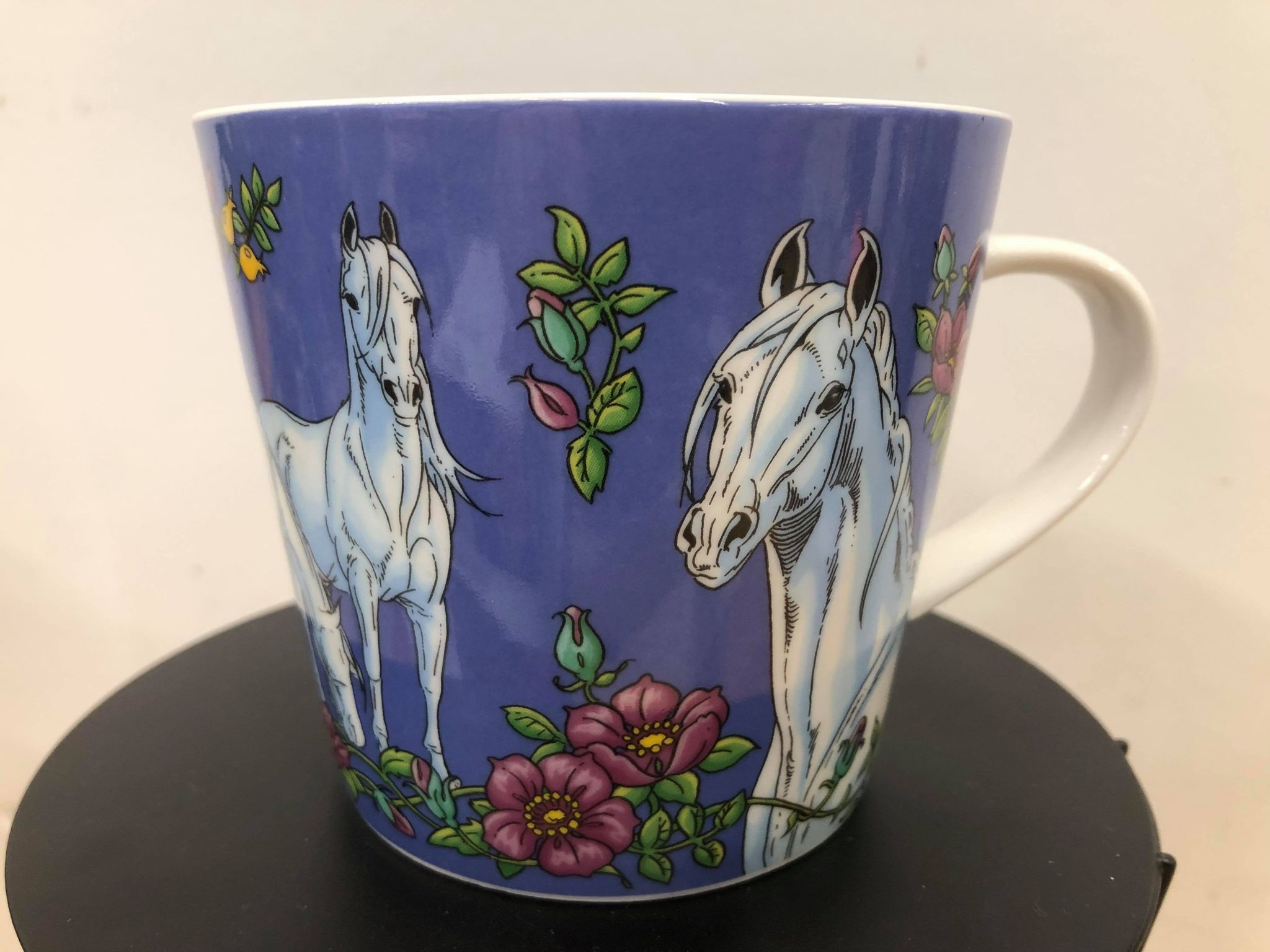 Lena Furbergin kuvittama ihastuttava ja ylväs Hevoset-muki. Mukin tilavuus on 3,5 dl. Konepesun ja mikron kestävä.
