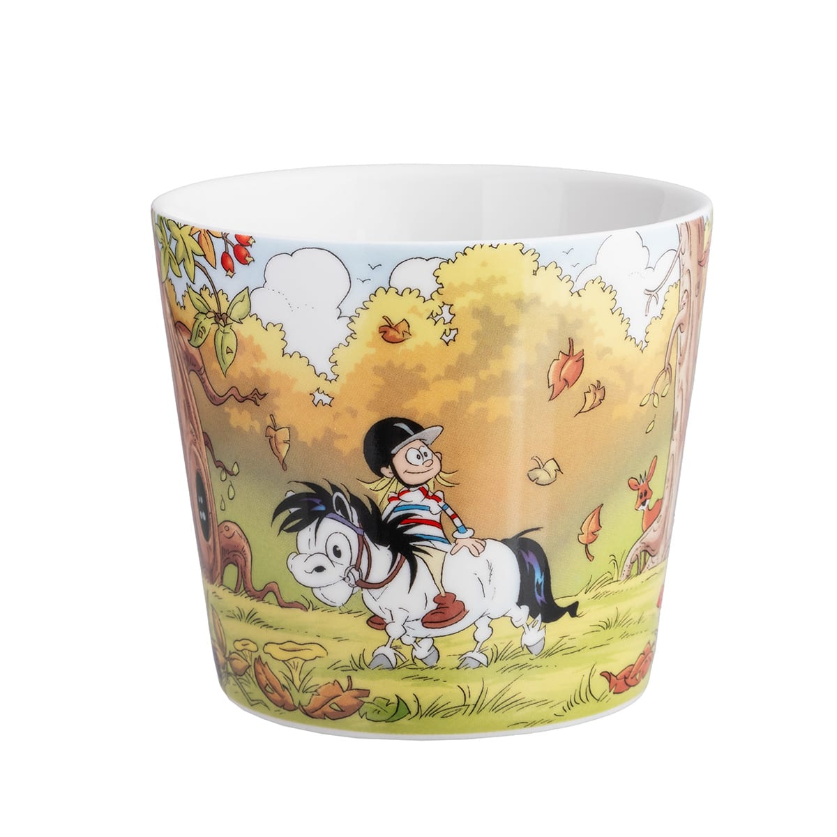 Ihastuttavasti kuvitettu keraaminen muki, jonka tilavuus on 3,5 dl. Kookkaan mukin kyljissä on tarinallinen kuvitus Pollesta ratsasturetkellä syksyisessä maisemassa. Kupillinen vaikkapa lämmintä kaakaota tai virkistävän viileää juomaa maistuu erityisen hyvältä Pollen seurassa. Muki ilahduttaa aamiaishetkessä, välipalalla tai iltapalalla ja se on mainio lahjaidea.