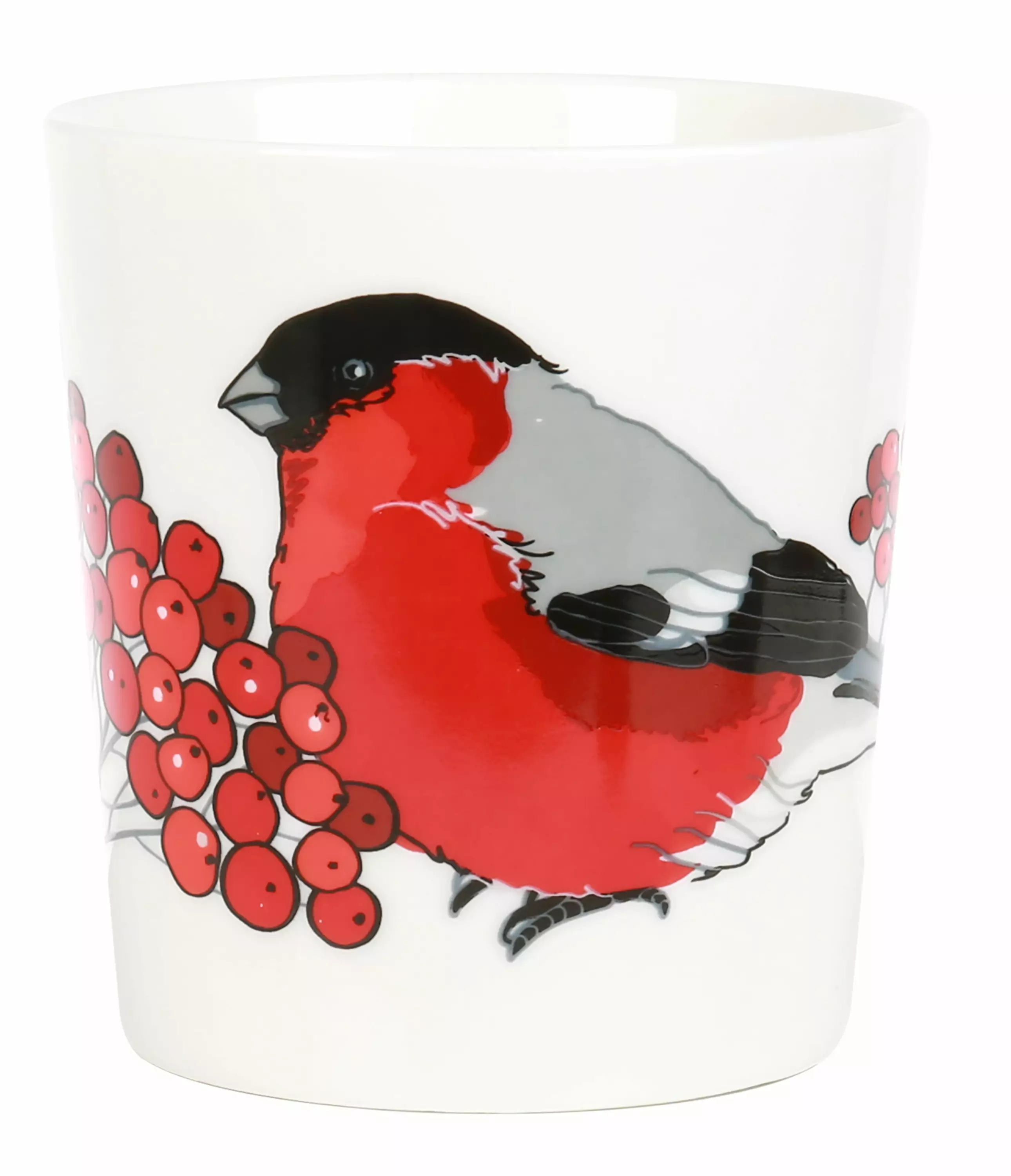 Ajattomasti muotoiltu posliinimuki. Valkoisessa mukissa on kaunis punatulkun kuva. Tilavuus 3 dl. Mikron, uunin ja konepesun kestävä.
