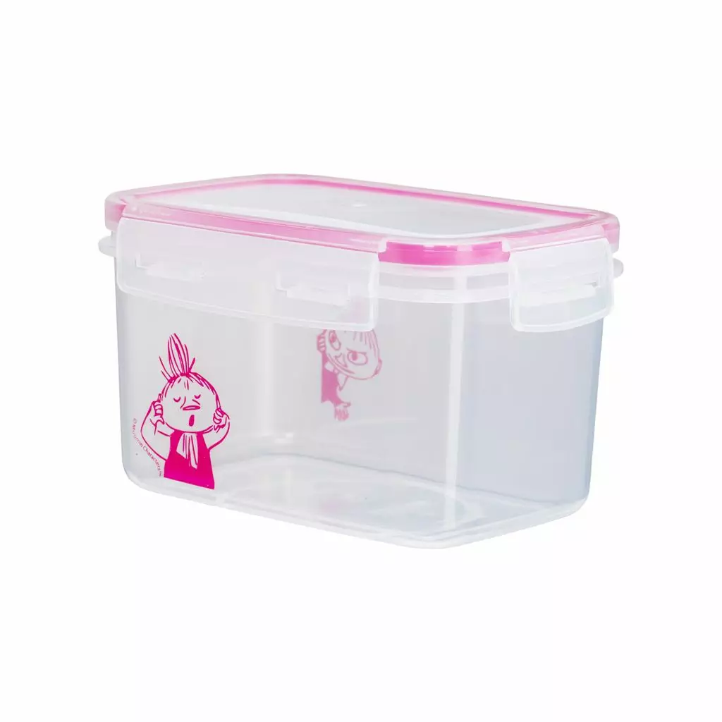 Kätevä PP-muovinen säilytysrasia, jossa on tiivis kansi. Purkissa voi säilyttää esim. jauhoja, pastaa jne., ja ne sopivat mainiosti myös jääkappiin, pakkaseen tai eväsrasiaksi. Säilytysrasioita koristaa ilmeikkäät muumihahmot.