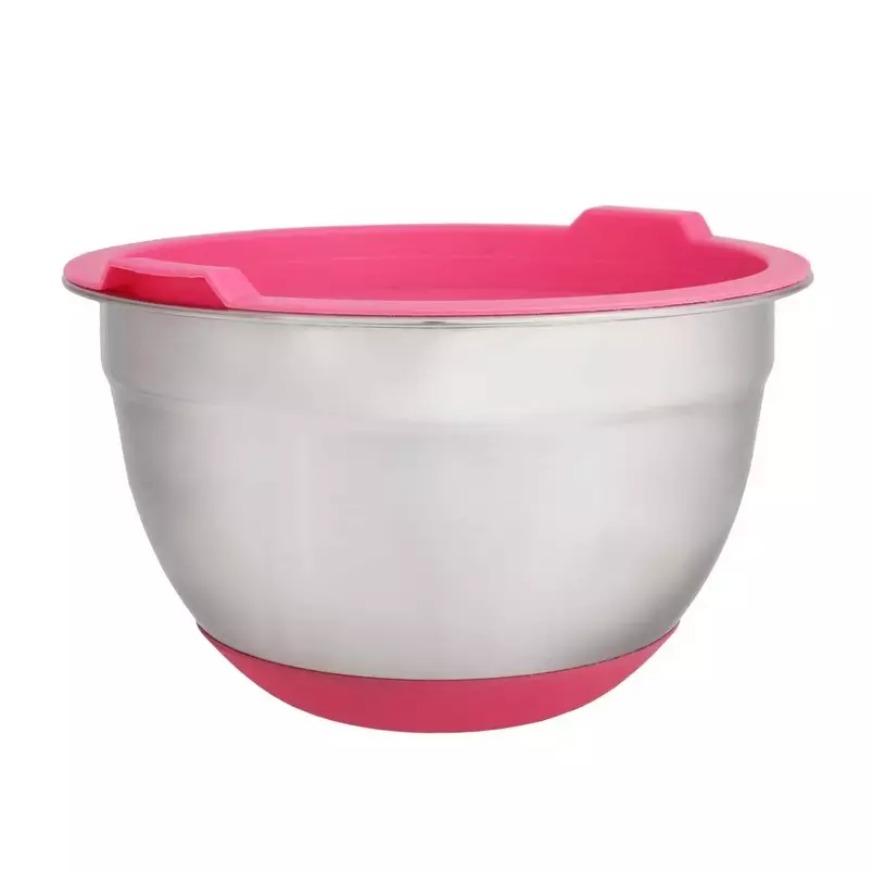 Ihastuttavan pinkki monikäyttöinen teräskulho, jonka vetoisuus on 1,5 l ja sisähalkaisija 16,5 cm. Kulho on ruostumatonta terästä, ja sen ulkopohjassa on liukumista estävä silikonisuojus ja tiiviisti sulkeutuva pinkki kansi. Iloa leivontaan ja ruoanlaittoon! Monikäyttöinen teräskulho, joka ei ime hajuja eikä makuja. Näin kulhoa voi käyttää pesun jälkeen aina eri käyttötarkoitukseen. Kulhon ulkopohjassa on liukumista estävä silikonisuojus, jonka ansiosta kulho pysyy hyvin paikoillaan. Kulho kestää konepesun, mutta kansi on pestävä käsin. Mainio apuväline keittiöön!