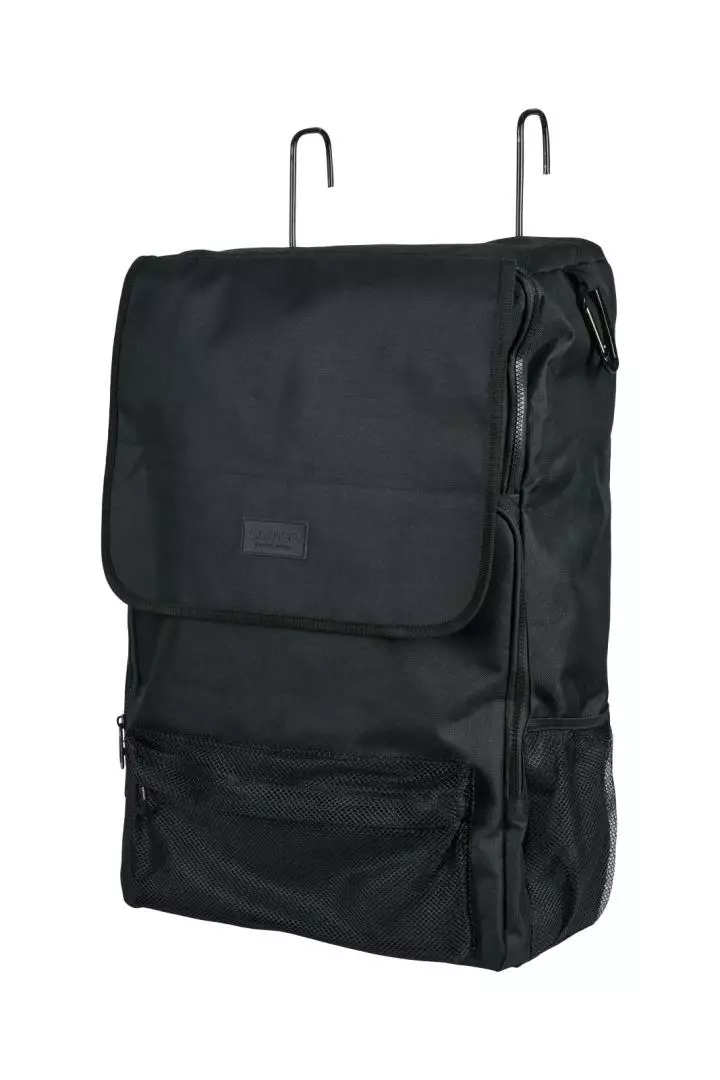 Laukku on suunniteltu käytännölliseksi säilytysratkaisuksi, jossa on suuri vetoketjullinen päälokero, vankka alapohjalokero pienemmille tavaroille sekä ulkoiset verkkotaskut, joihin usein tarvittavat tarvikkeet ovat helposti saatavilla. Laukussa on lisäksi kätevät sivulenkit esimerkiksi riimulle ja riimunnarulle sekä kaksi ripustuskoukkua, joiden ansiosta sen voi helposti kiinnittää karsinan oveen.